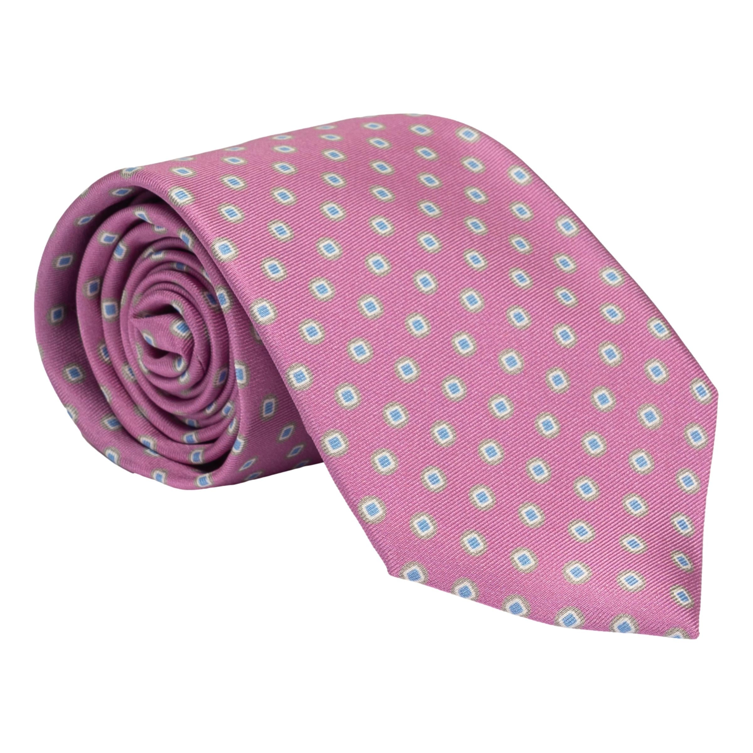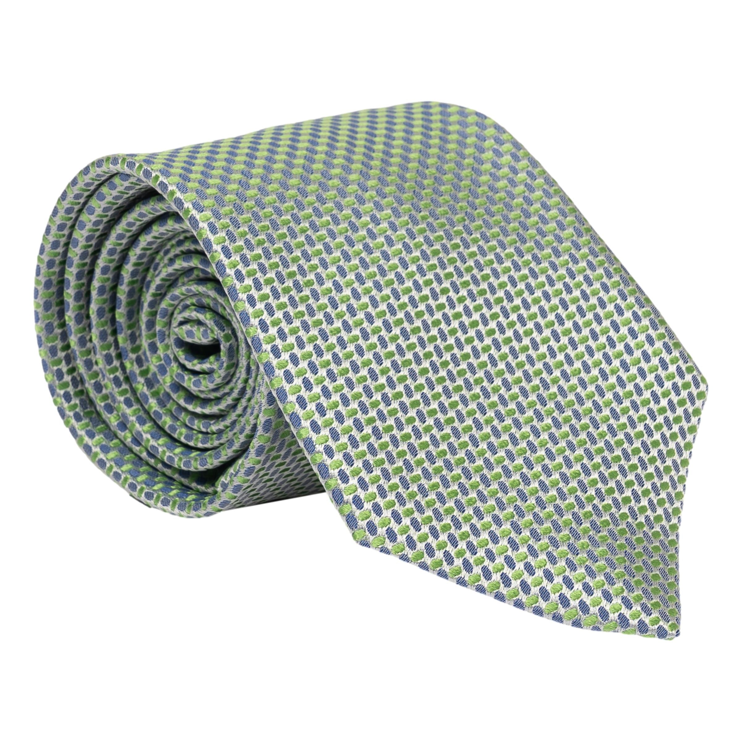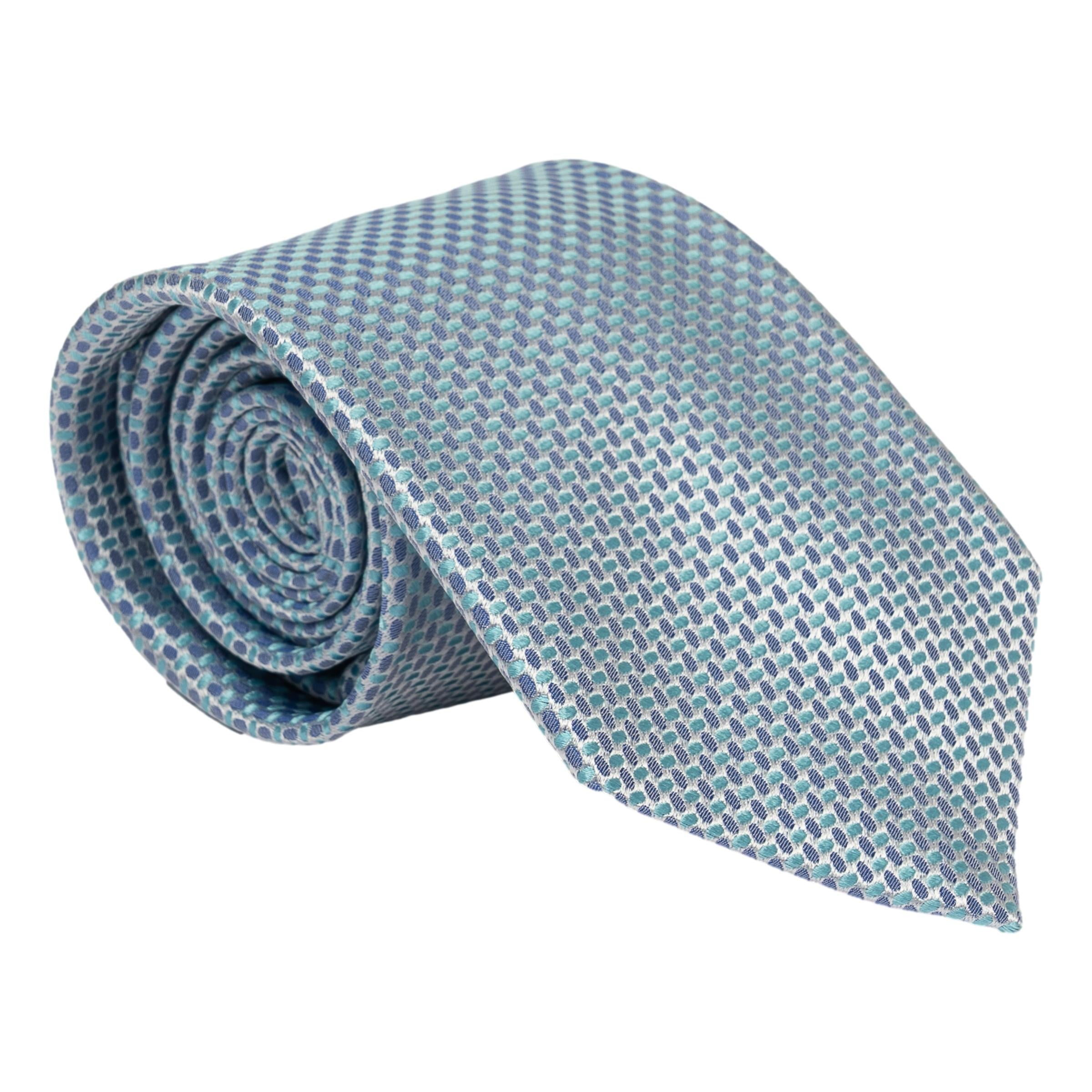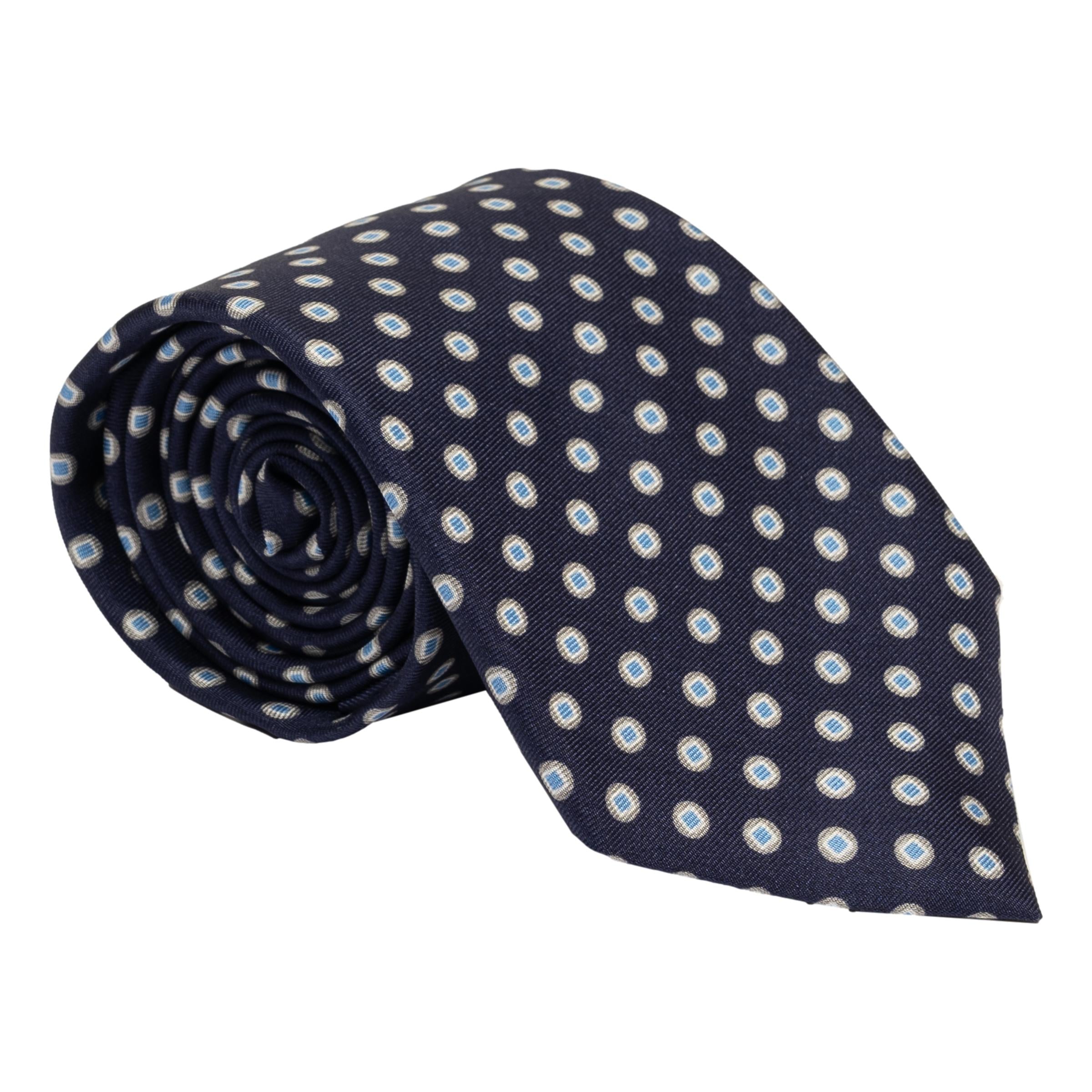 Woven Small White Bordered Blue Dot Neat Silk Tie
