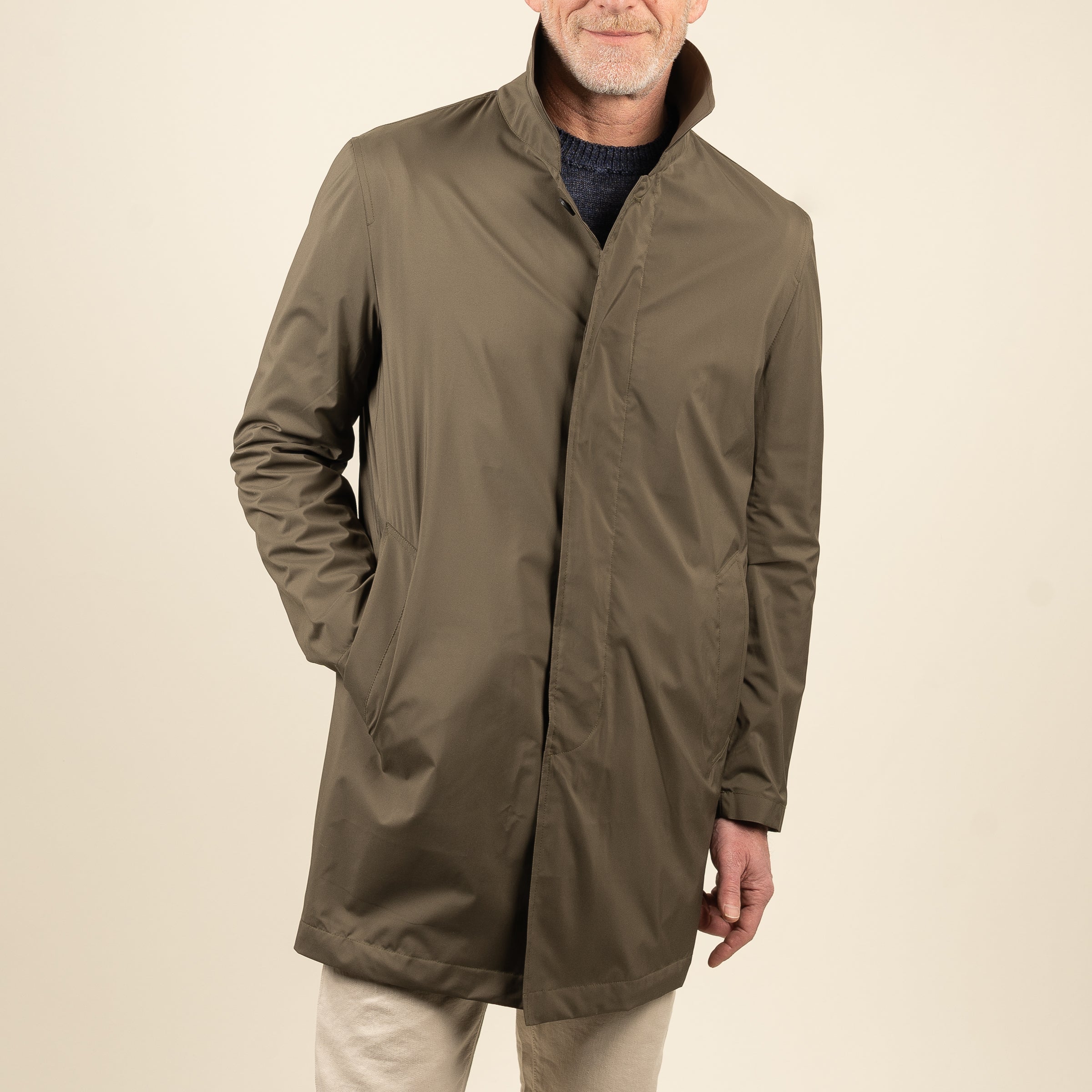 The Bertram Packable All-Weather Coat, made in Italy for The Andover Shop, is crafted from a lightweight, luxury fabric designed to offer exceptional protection in any weather. Combining elegant style with a soft hand-feel, it ensures unmatched comfort and reliability for all conditions. Perfect for spring and summer, this versatile outerwear includes a packable stretch pocket for easy travel storage, along with two side hip pockets. Waterproof and windproof, it's the ideal coat for staying stylish and prepared.