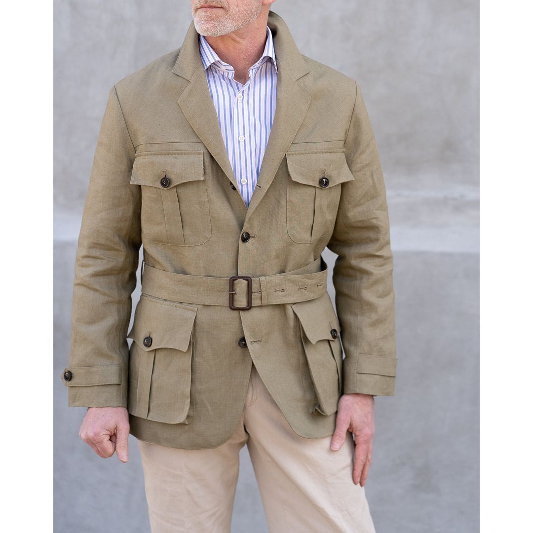 The Granger Linen Jacket is a sophisticated and versatile garment designed for both style and functionality. Made from 100% linen, this jacket offers a lightweight and breathable feel, perfect for warmer weather or layering during transitional seasons. It features two chest pockets and two hip pockets, providing ample storage space while adding a touch of utility to the design. The waist belt adds a tailored and adjustable fit, allowing you to customize the silhouette to your preference. Additionally, the jacket includes two interior pockets for added convenience and security. With a center vent for enhanced comfort and mobility, the Granger Linen Jacket combines classic style with modern details for a timeless and practical outerwear piece.