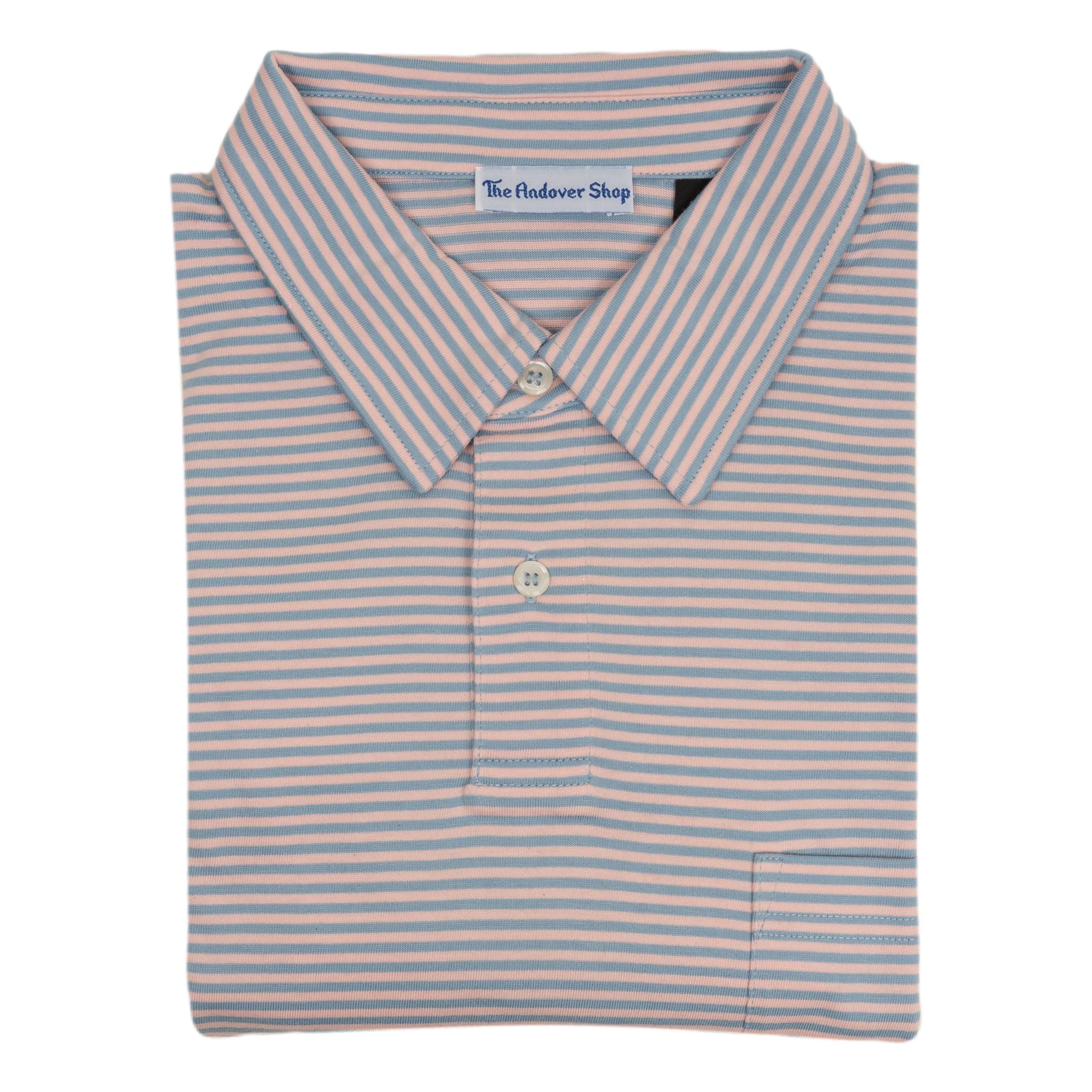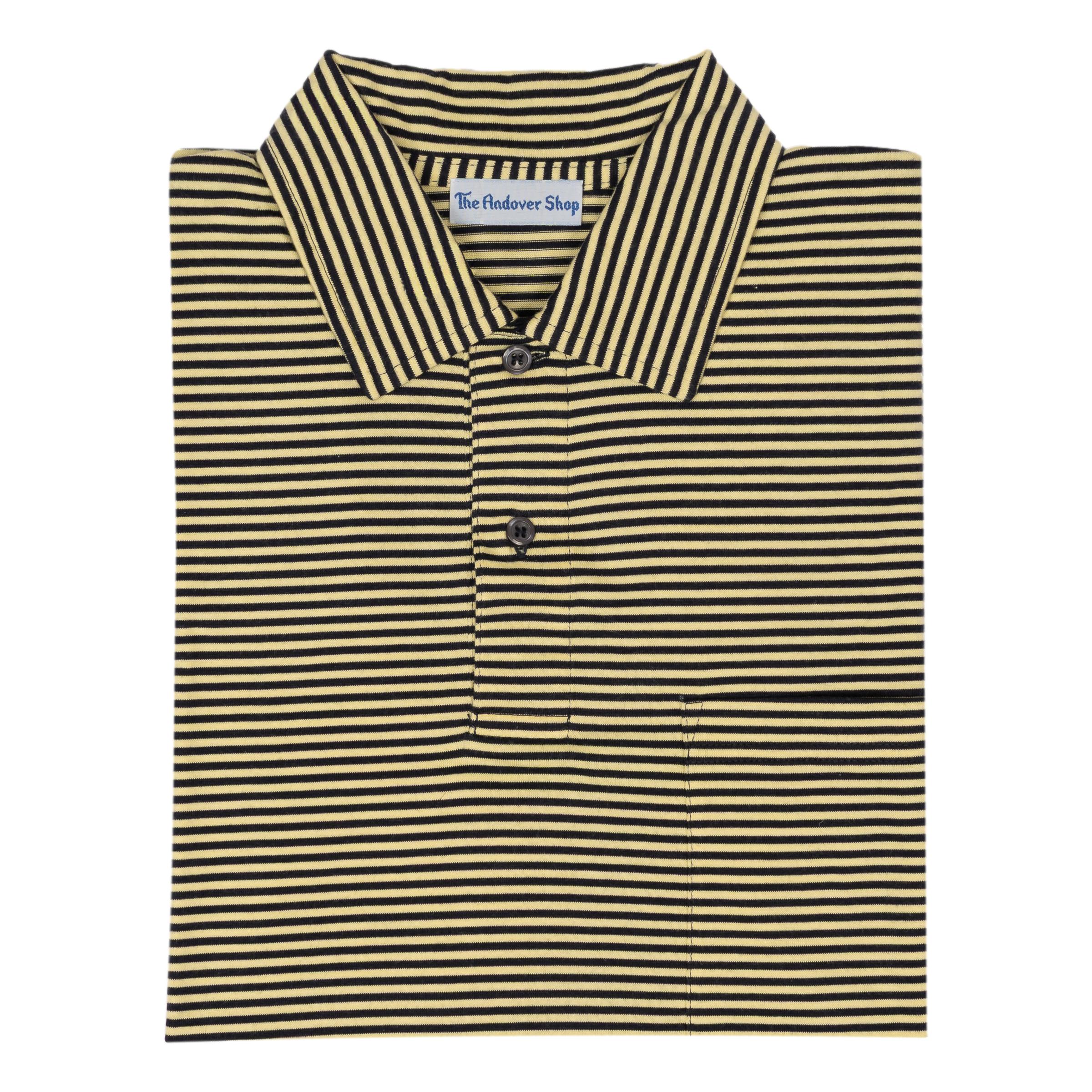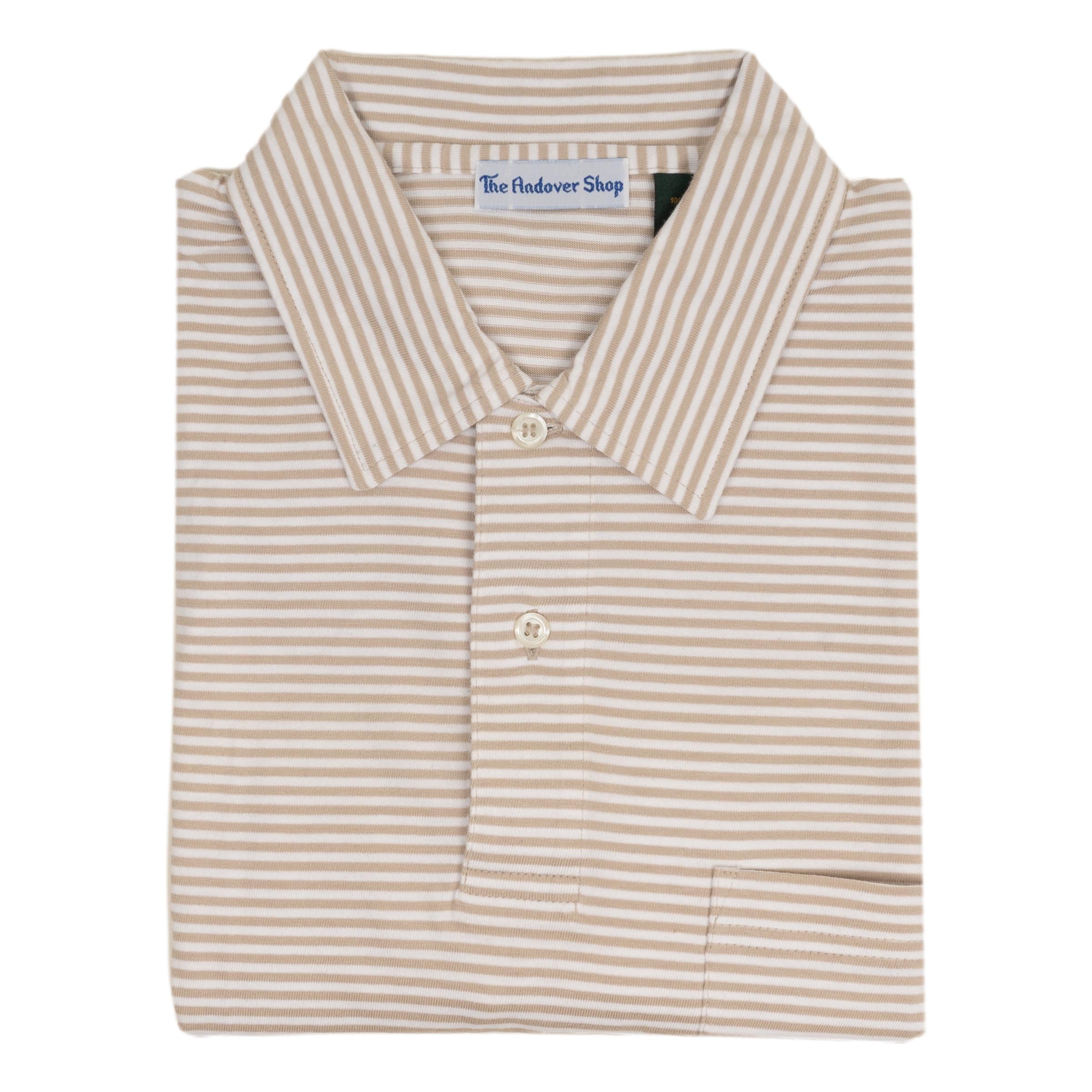 100% Pima cotton made for The Andover Shop in Peru. This polo features a self collar with pocket. Similar to our classic Striped Polo Jersey with a fun yet sophisticated knit contrast collar, our Striped Jersey Polo with a 'self' collar is another closet staple. The light fabric will keep you cool and looking sharp on the hottest of days.