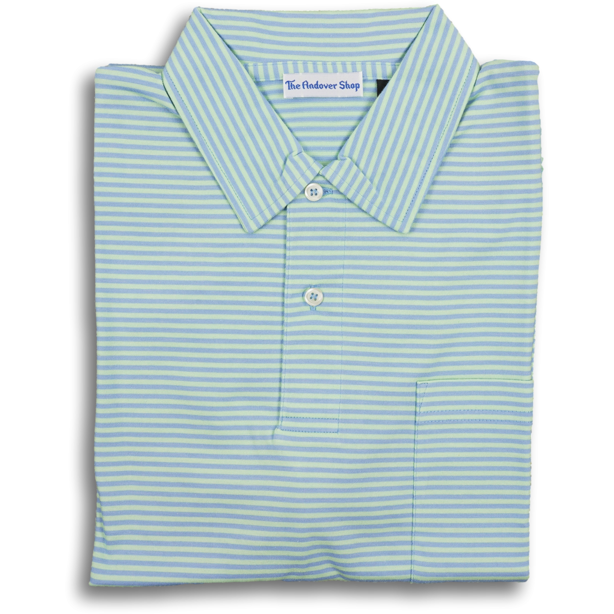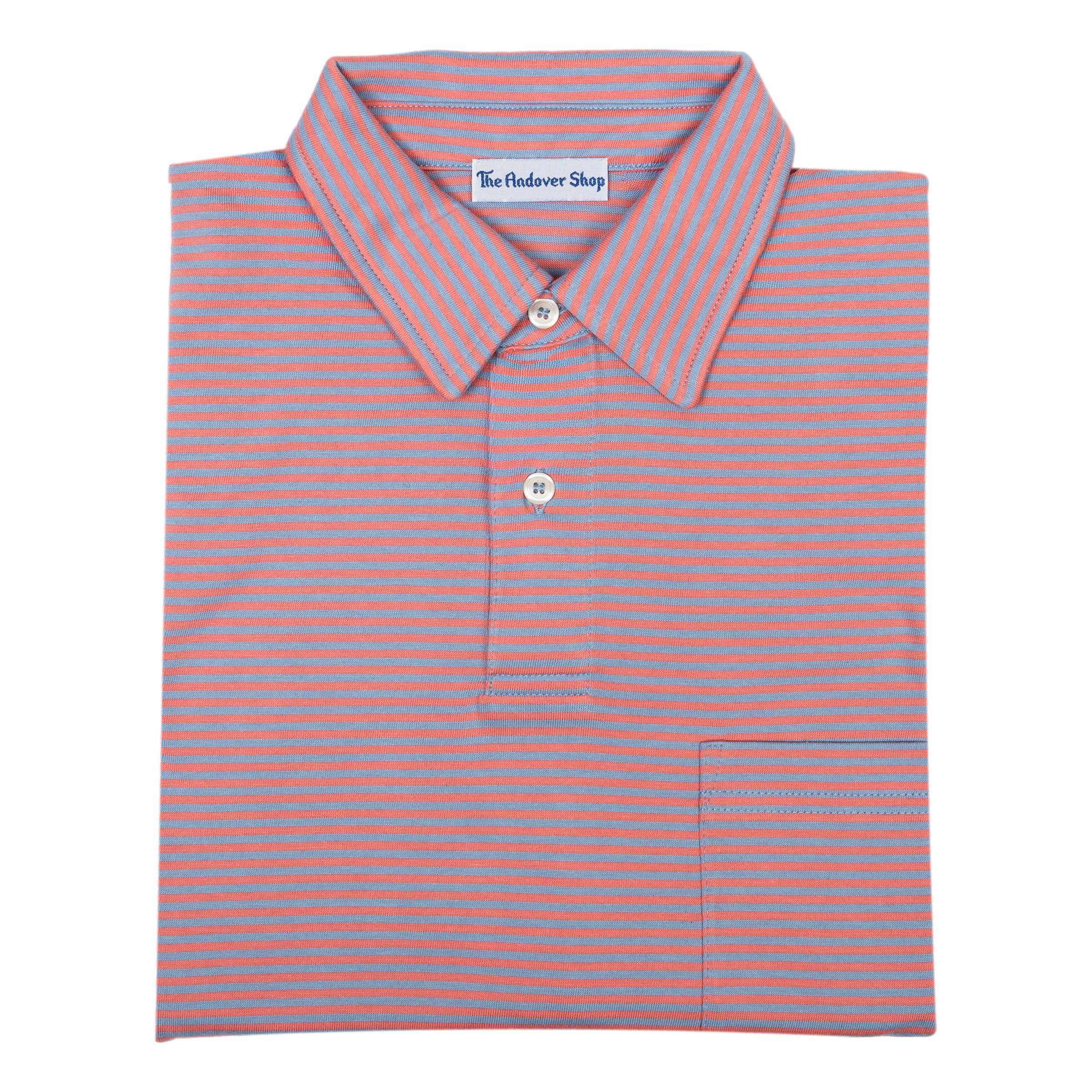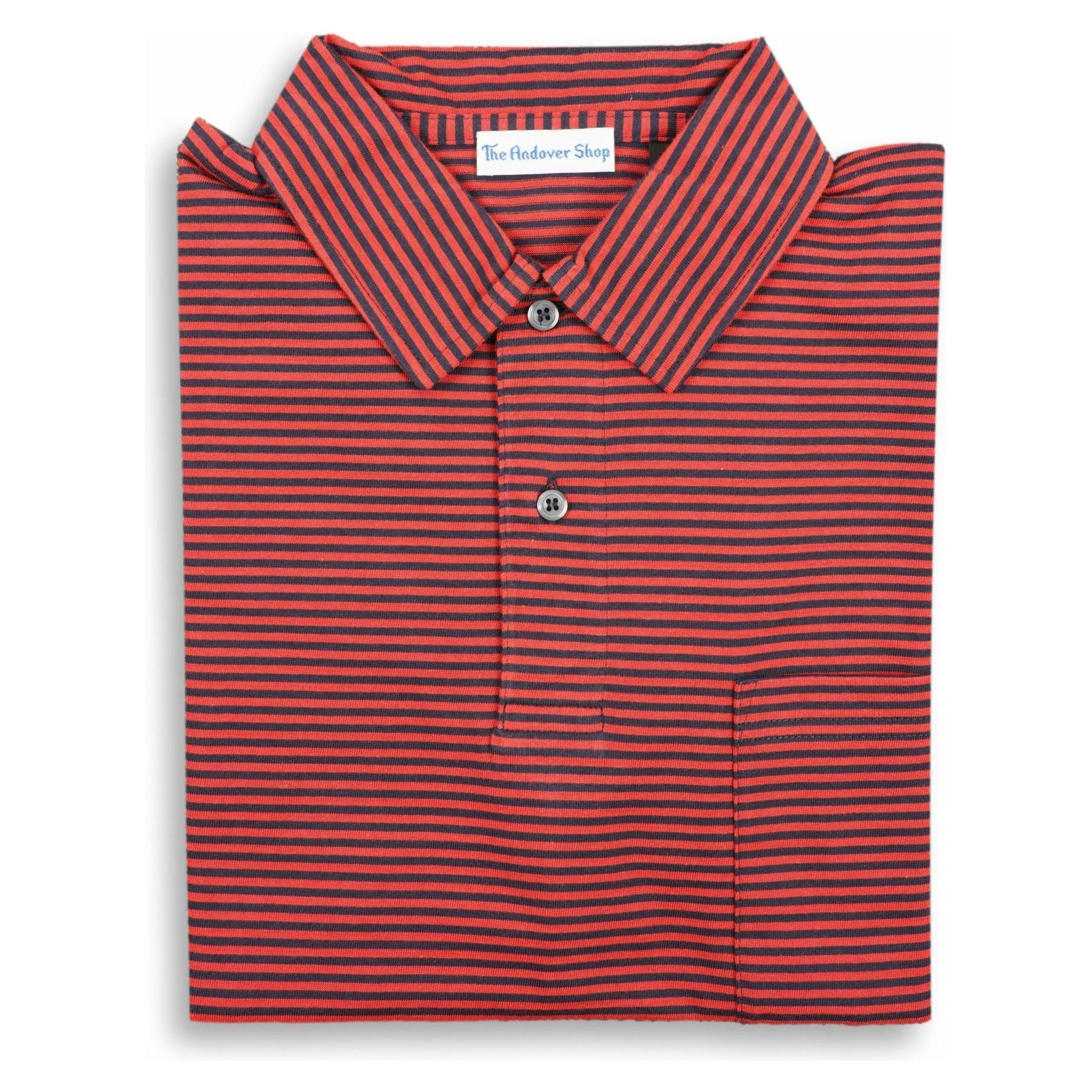 100% Pima cotton made for The Andover Shop in Peru. This polo features a self collar with pocket. Similar to our classic Striped Polo Jersey with a fun yet sophisticated knit contrast collar, our Striped Jersey Polo with a 'self' collar is another closet staple. The light fabric will keep you cool and looking sharp on the hottest of days.