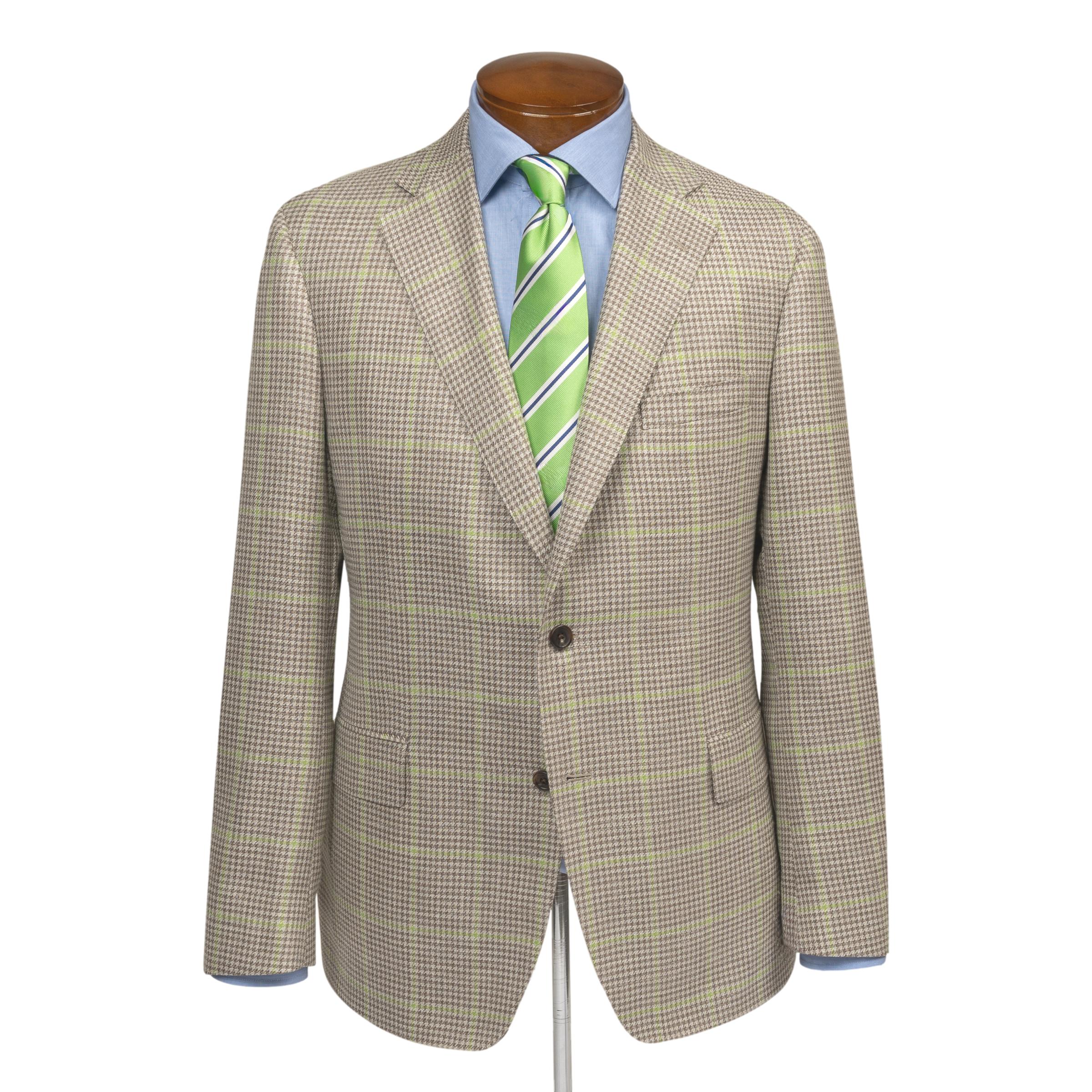 Natural Houndstooth with Light Green Windowpane Wool, Silk, and Linen Sport Coat