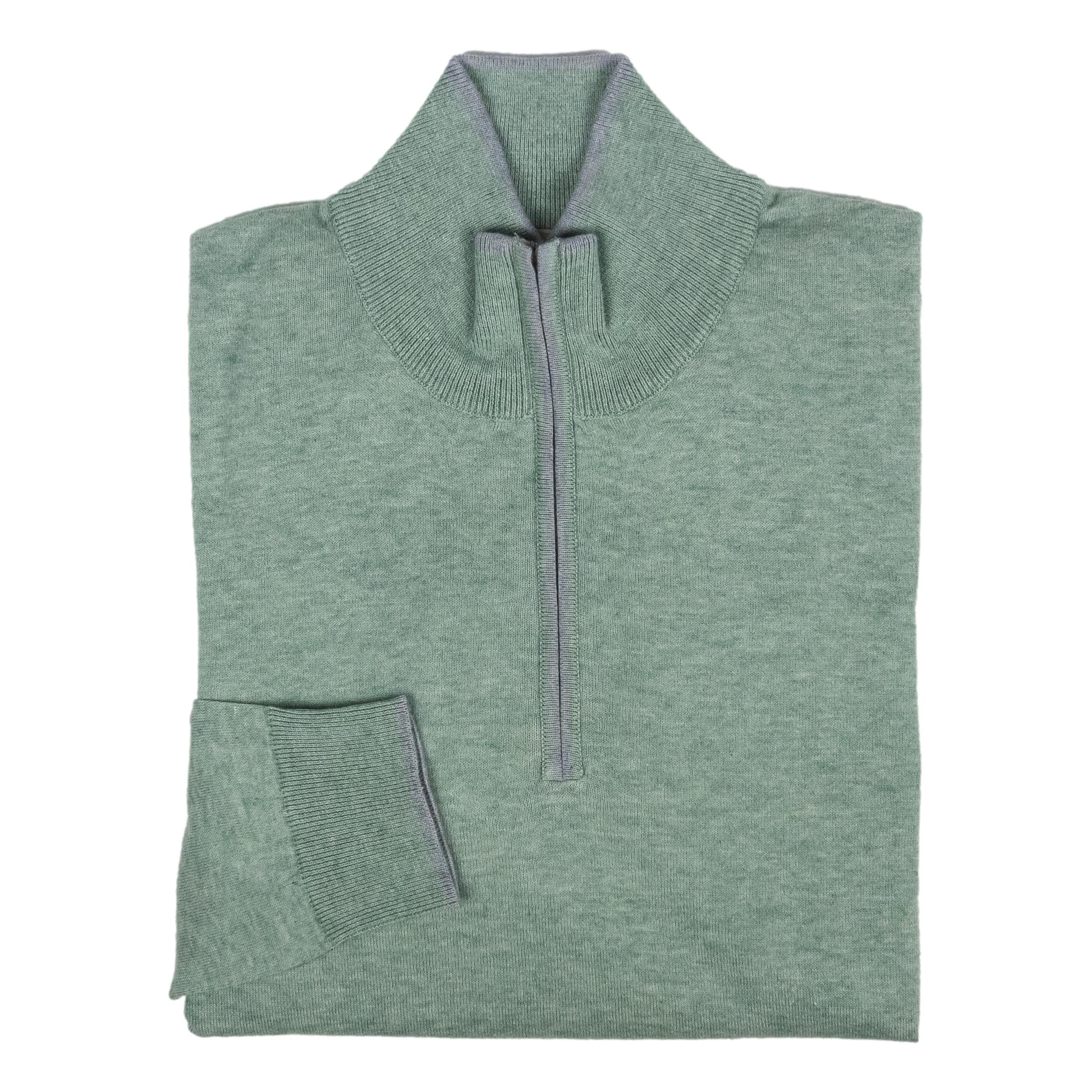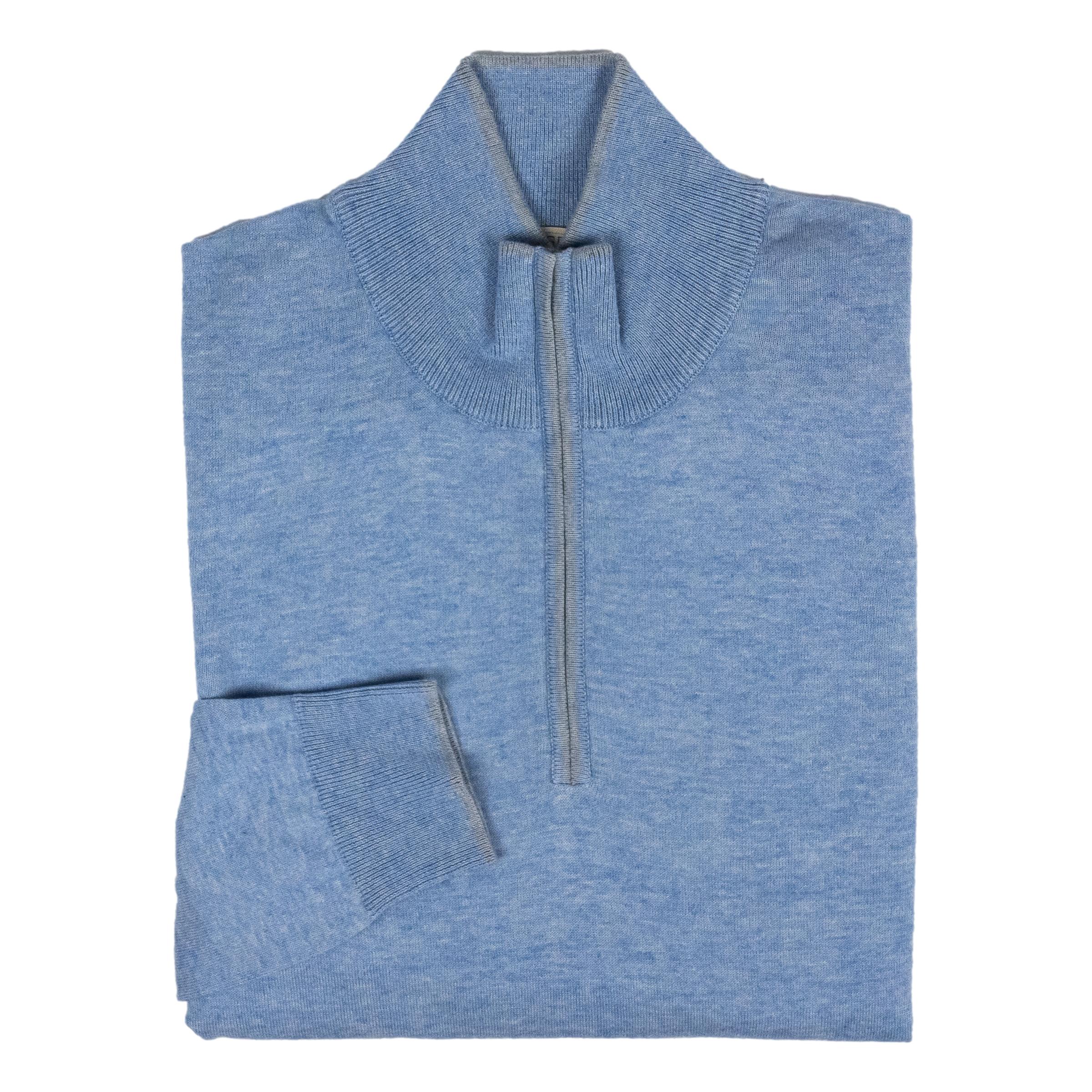 The Cotton Cashmere Quarter Zip Sweater is a luxurious and versatile wardrobe essential, perfect for the spring and summer seasons. Crafted in Italy, it seamlessly combines the breathability of cotton with the softness of cashmere, ensuring a comfortable and stylish wear. With its ideal weight, this sweater effortlessly transitions from cool spring evenings to mild summer nights, making it a sophisticated and timeless choice for any discerning wardrobe.