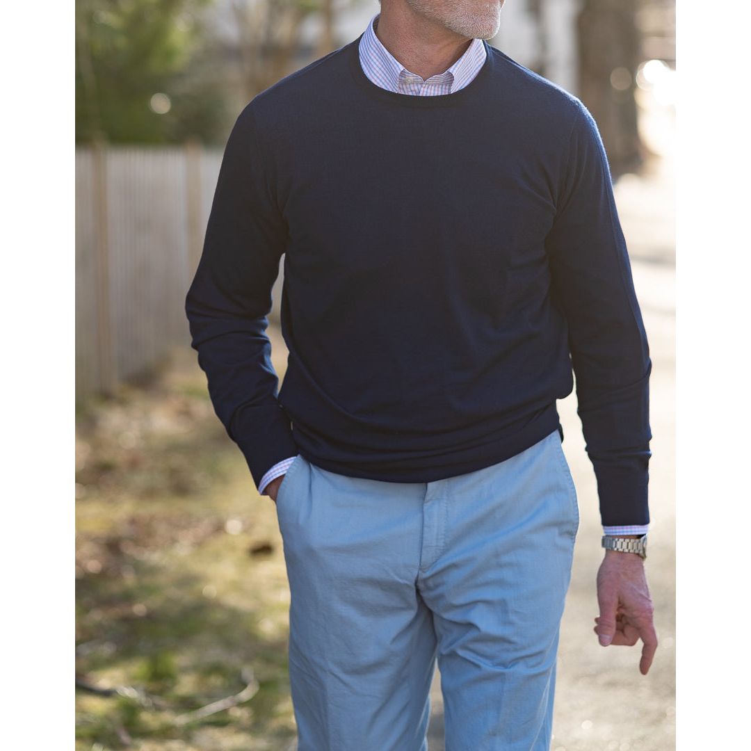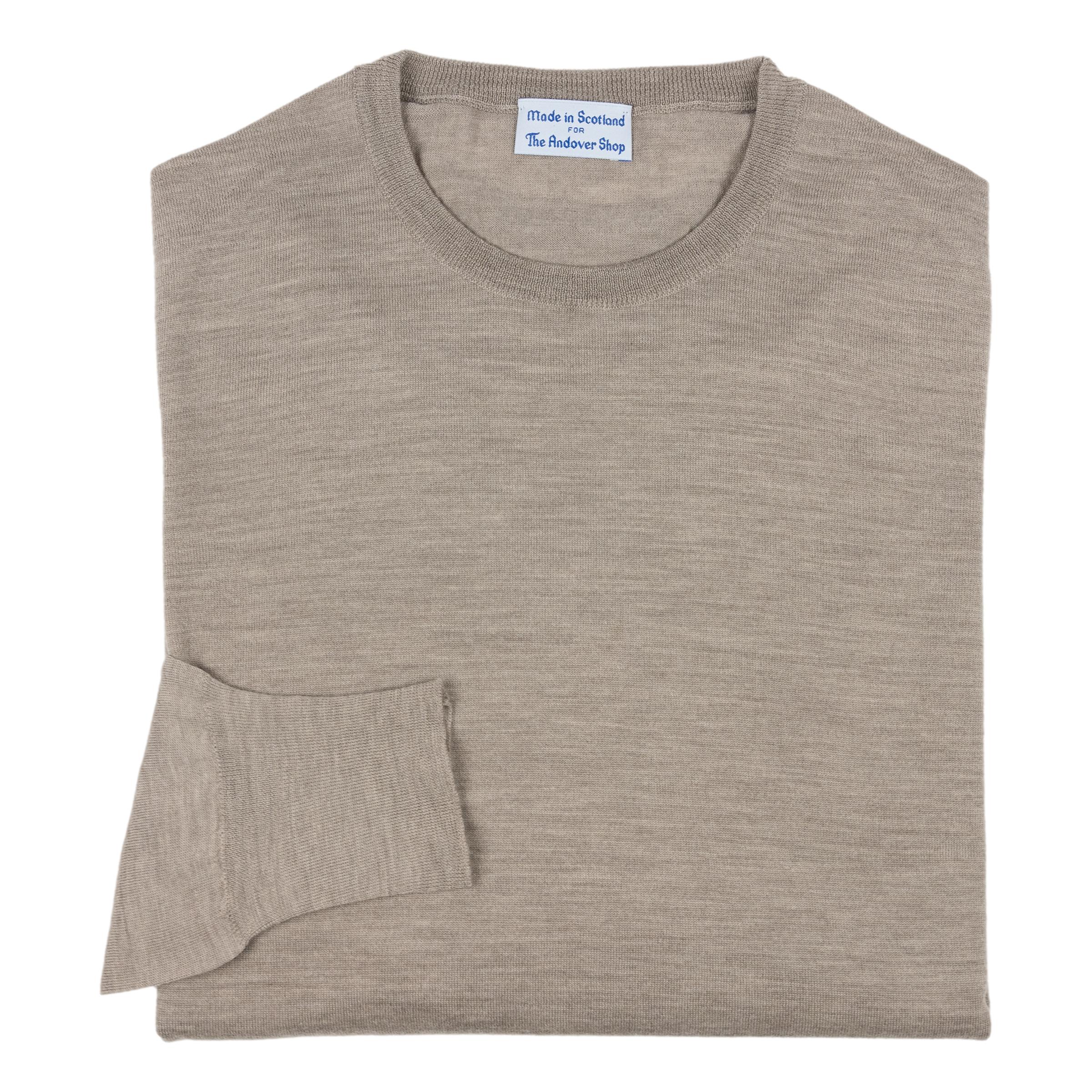 Discover The Andover Shop's 100% Superfine Merino Wool Crew Neck Sweater, meticulously crafted in Scotland for spring and summer wear. This lightweight and luxuriously soft sweater redefine comfort, blending Scottish expertise with premium merino wool. Embrace a timeless, breathable style that effortlessly complements your seasonal wardrobe.
