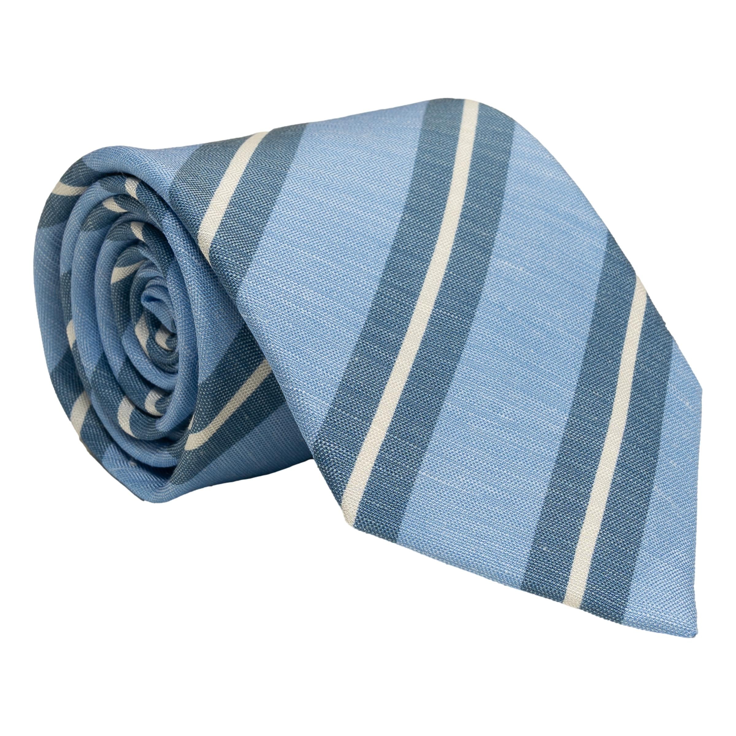 Light Blue and White Repp Stripe Silk and Linen Tie
