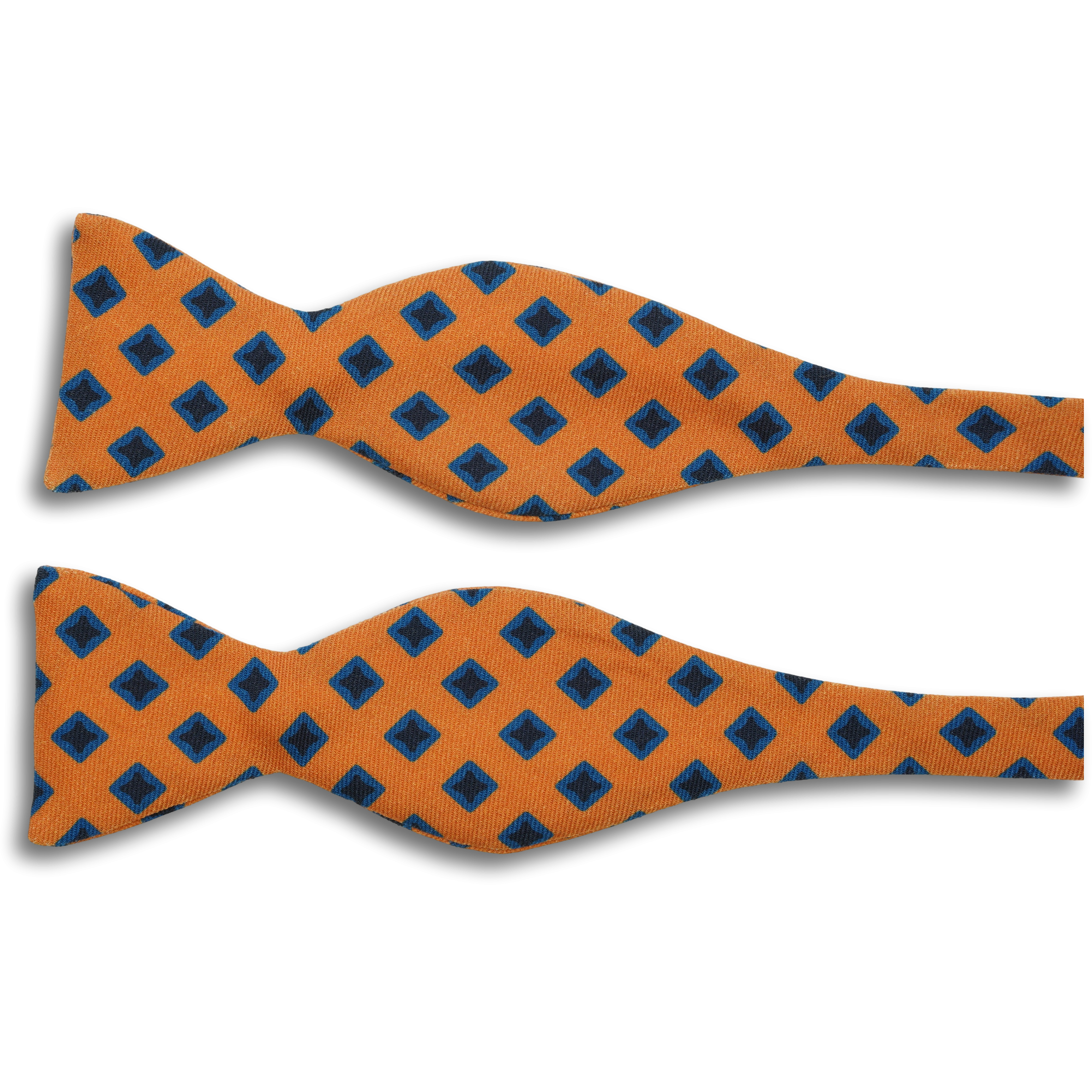 Dark Orange with Blue and Navy Square Pattern Wool Butterfly Bow Tie