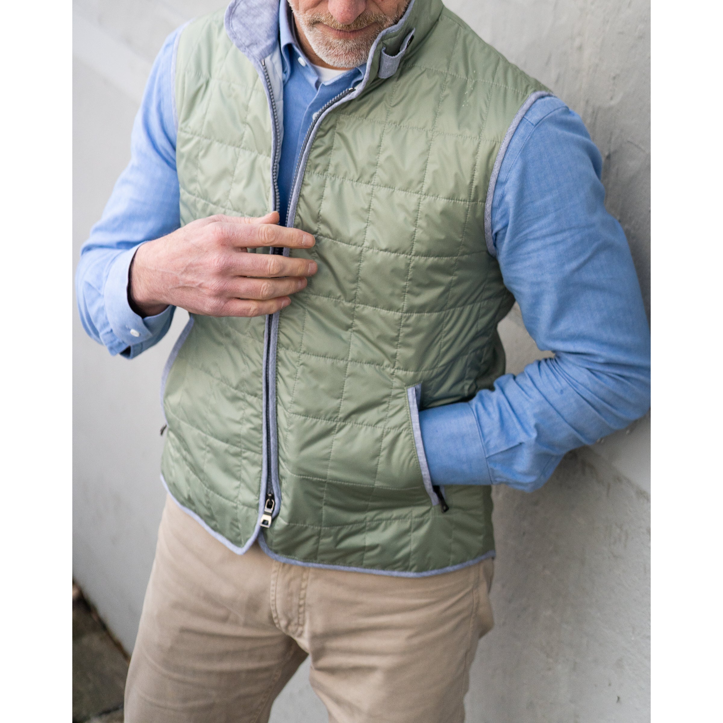 The iconic Waterville Theo quilted vest is made from 100% water resistant nylon and is complete with a 2-way front zipper, zippered hand pockets and two interior zippered pockets. This lightly quilted vest is designed with versatility in mind and is the perfect Spring golfing vest. We recommend going one size up from your jacket size. Made in Italy for The Andover Shop using all Italian materials and hardware.