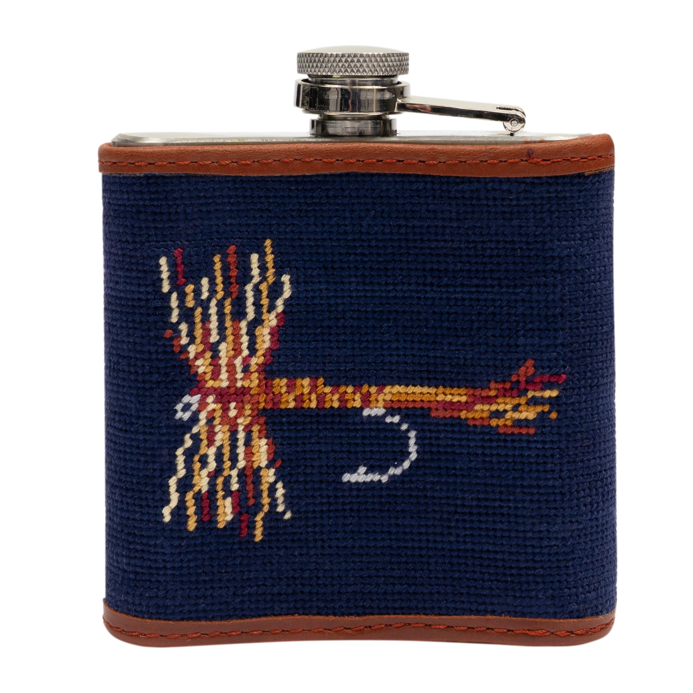 Trout and Fly Needlepoint Flask