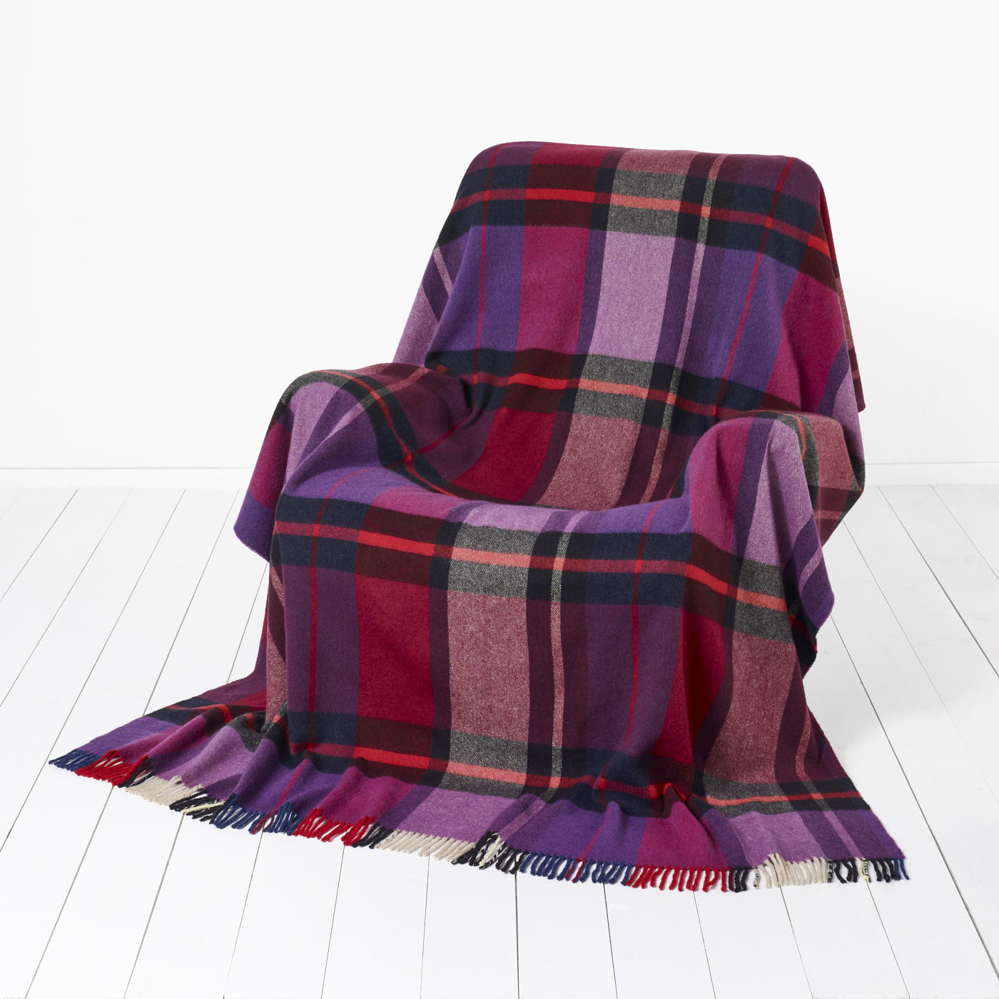 Add a stunning splash of color to your interiors with our Madison throws! Available in Tartan and Mulberry color combinations, the fashionably oversized check design makes for a true statement accessory.