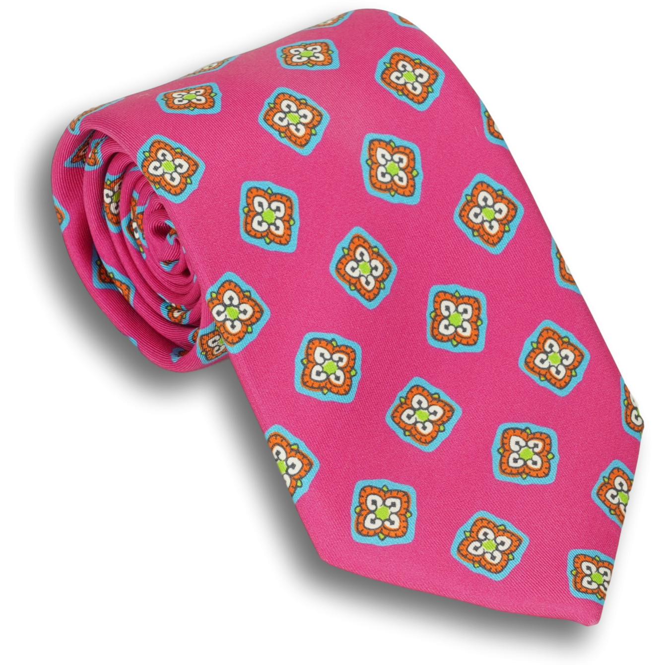 This 100% silk traditional tie is hand-finished and 8 cm in width, 149 cm in length. The color and design makes it versatile and complimentary to many wardrobe options. The perfect addition to every closet and tie collection. Made in England and dry clean only.