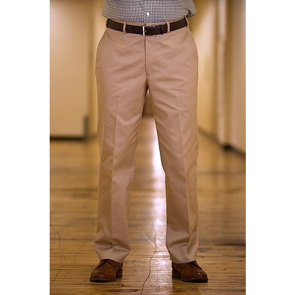 This classic Chino, in comfortable Combed Cotton, has all the benefits of comfort and durability, including the ability to hold a crisp pressed crease. This year-round trouser with a plain front and medium rise are proudly made in in Lawrence, Massachusetts.