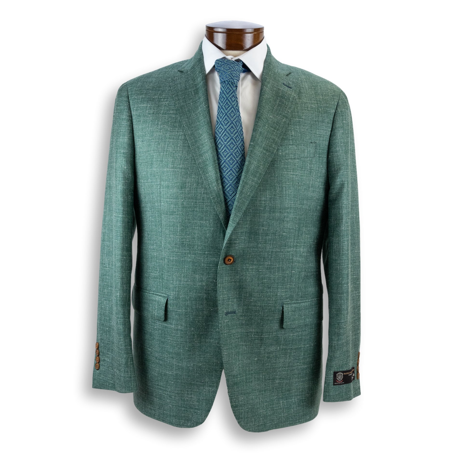 The Green Wool, Silk, and Linen Fratelli Tallia Di Delfino is a versatile and stylish jacket that is perfect for both formal and casual occasions. The sport coat is made from a high-quality blend of Wool, Silk, and Linen Fratelli Tallia Di Delfino, an Italian textile company renowned for its luxurious fabrics.