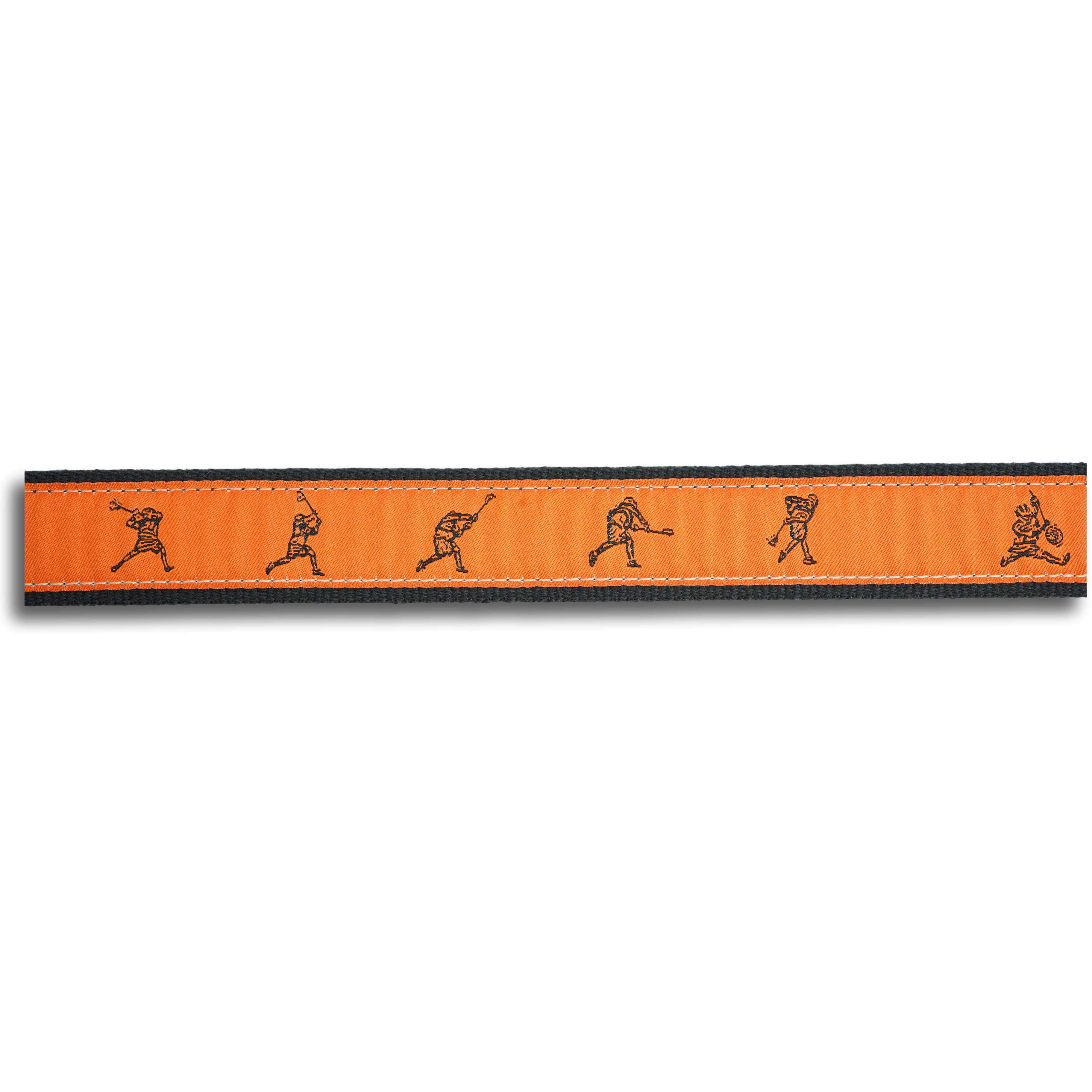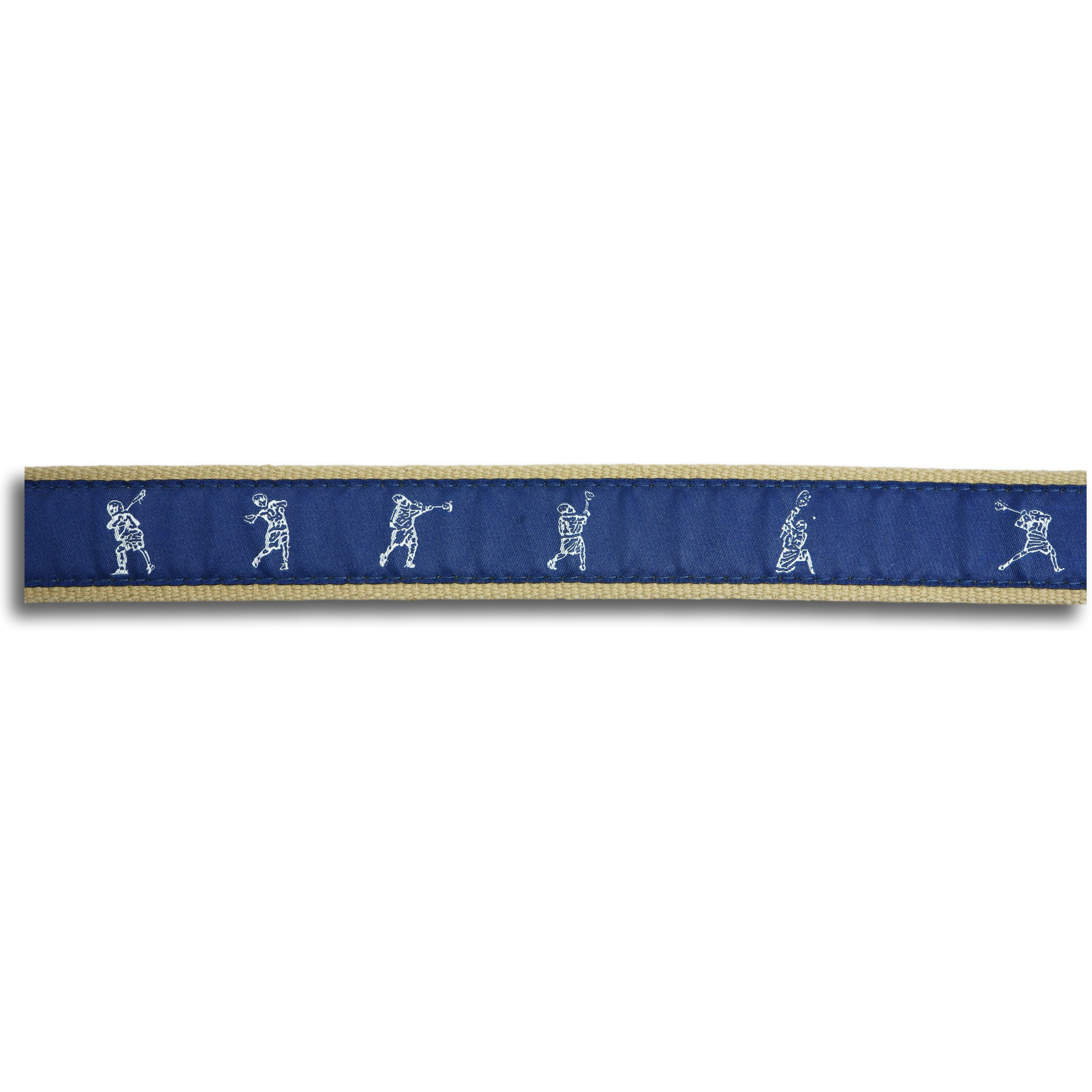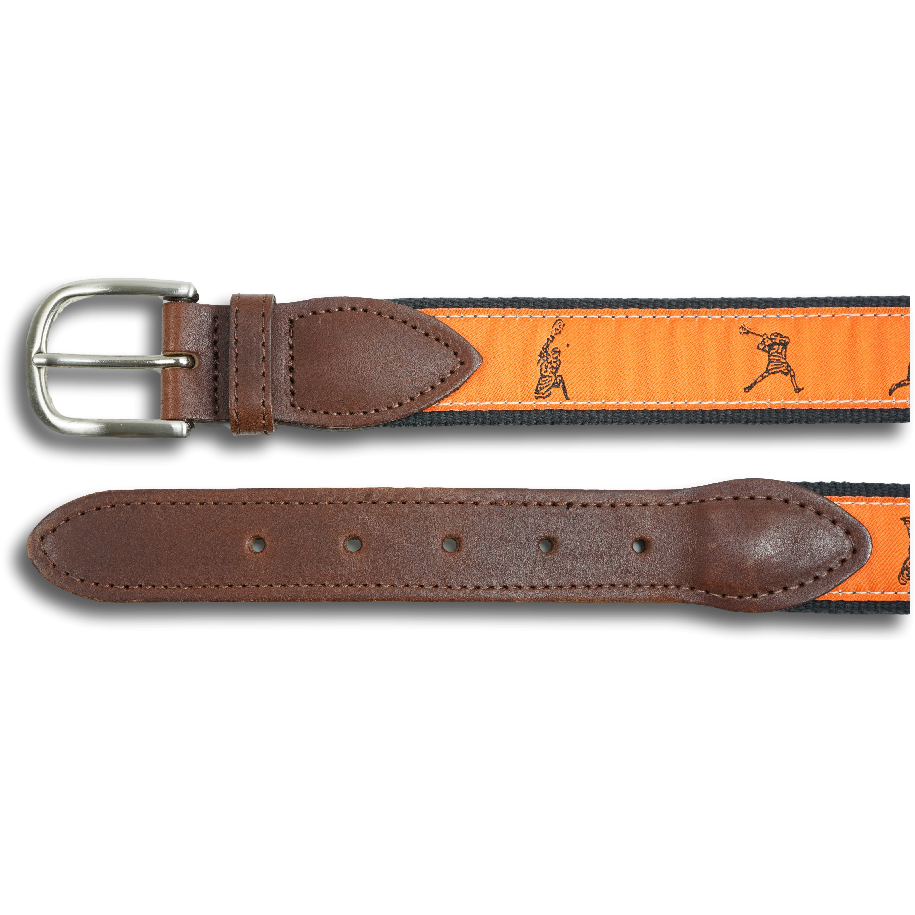 Each belt has an artist-designed signature ribbon stitched onto 100% cotton webbing and fully stitched leather tabs cut from full grain Latigo leather. Each leather tab belt is finished with solid cast brass buckles in a brushed silver finish. Proudly Made in Maine.
