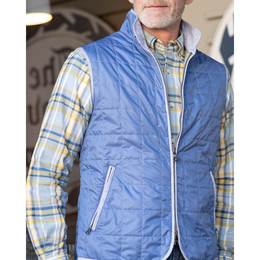 The iconic Waterville Theo quilted vest is made from 100% water resistant nylon and is complete with a 2-way front zipper, zippered hand pockets and two interior zippered pockets. This lightly quilted vest is designed with versatility in mind and is the perfect Spring golfing vest. We recommend going one size up from your jacket size. Made in Italy for The Andover Shop using all Italian materials and hardware.