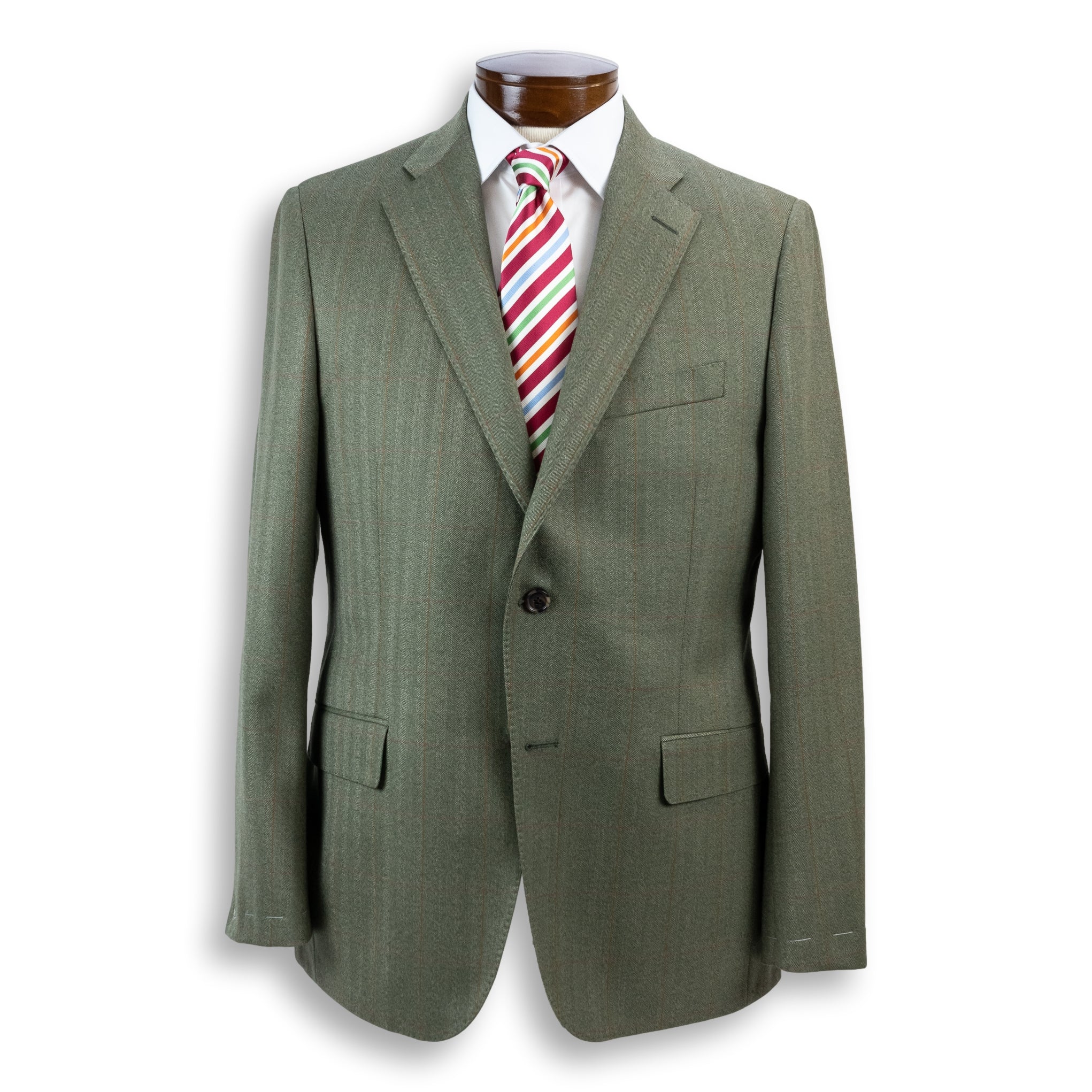 Light Green Herringbone with Red and Orange Worsted Wool Sport Coat