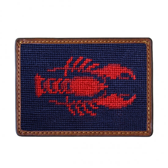 This Smathers & Branson hand-stitched lobster needlepoint card wallet is finished with English bull hides tanned in Italy. This slimmer wallet style (4” by 3”) provides enough room for cards, cash, and an ID, but does not take up too much room in a pocket or bag. Great for carrying in your front pocket and something less bulky for a night on the town!