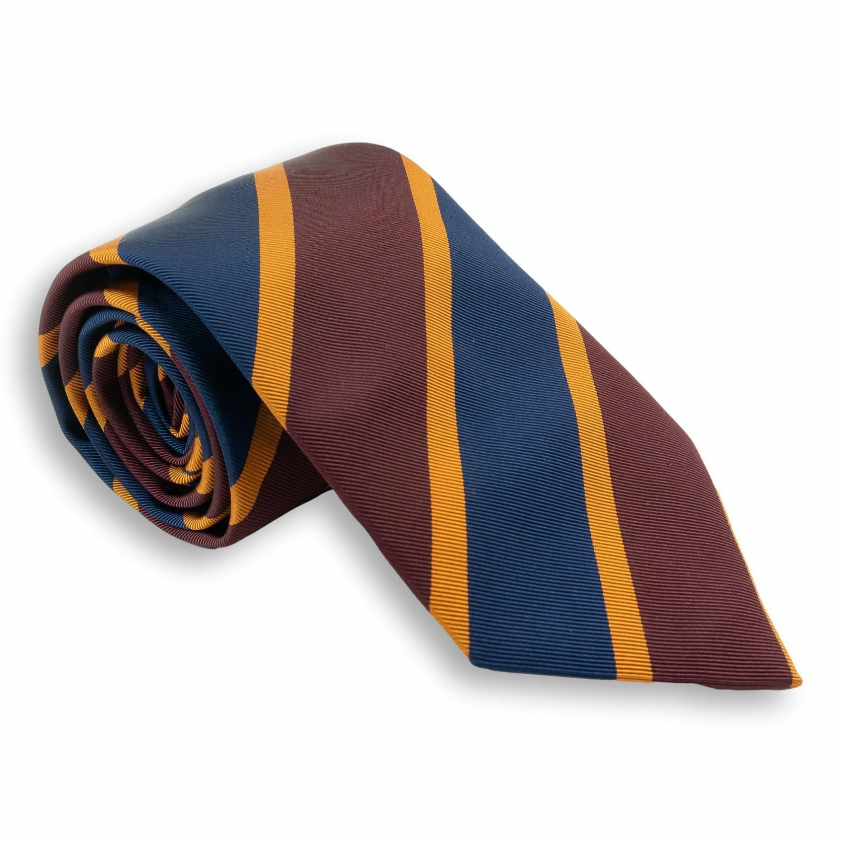 Maroon, Navy, and Gold Repp Stripe Silk Tie
