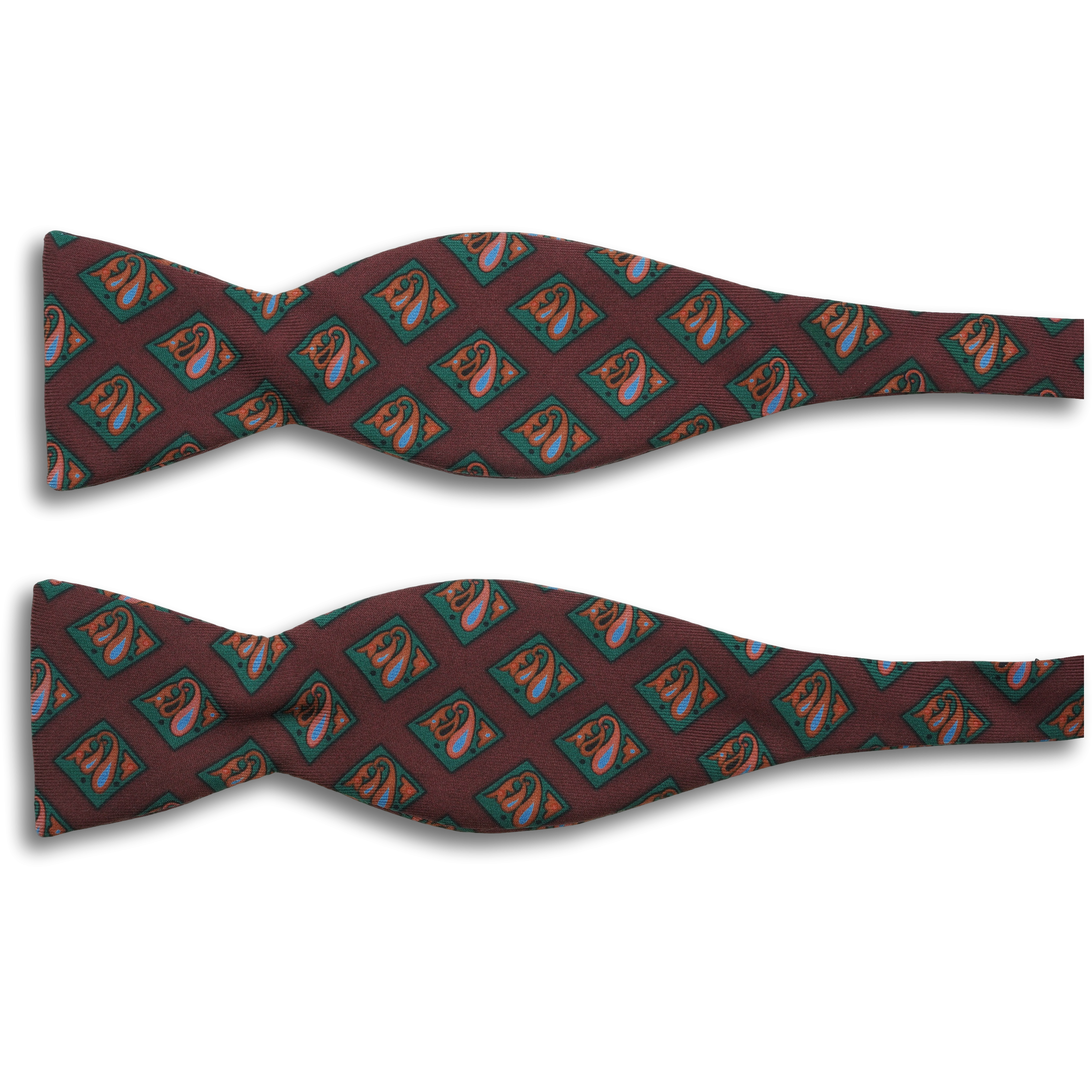 Maroon with Paisley Square Motif Silk Butterfly Bow Tie