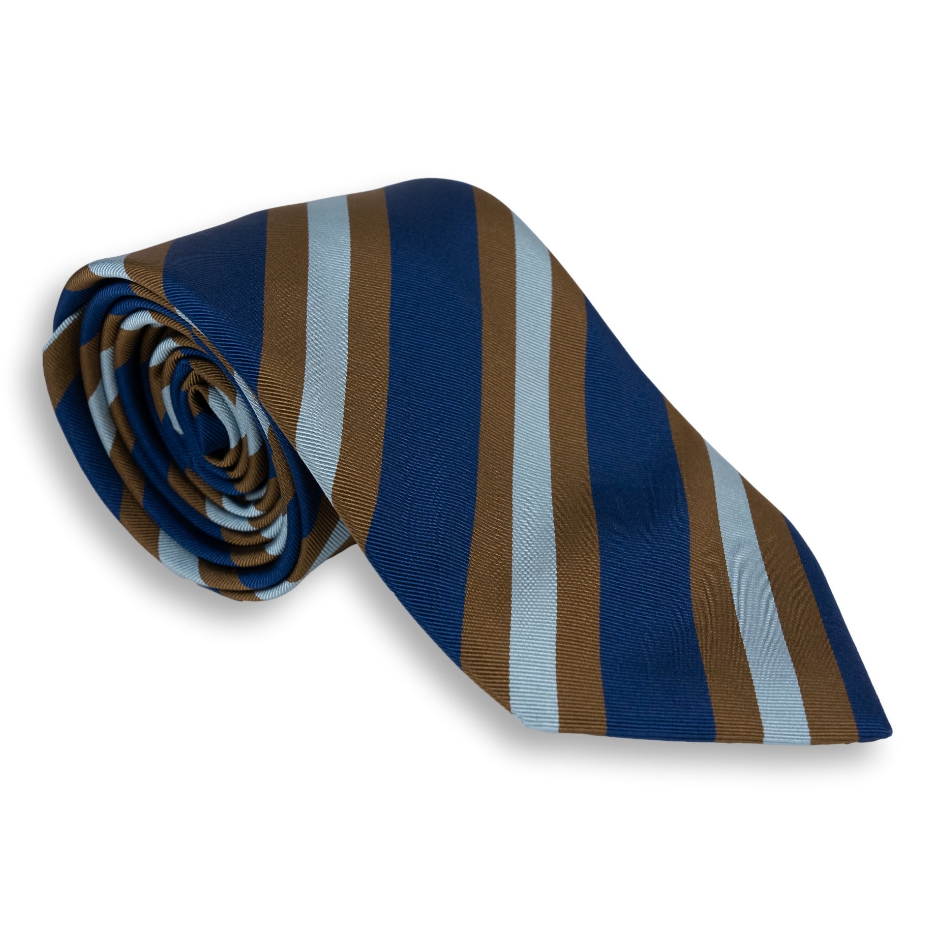 Navy, Brown, and Light Blue Silk Repp Stripe Tie