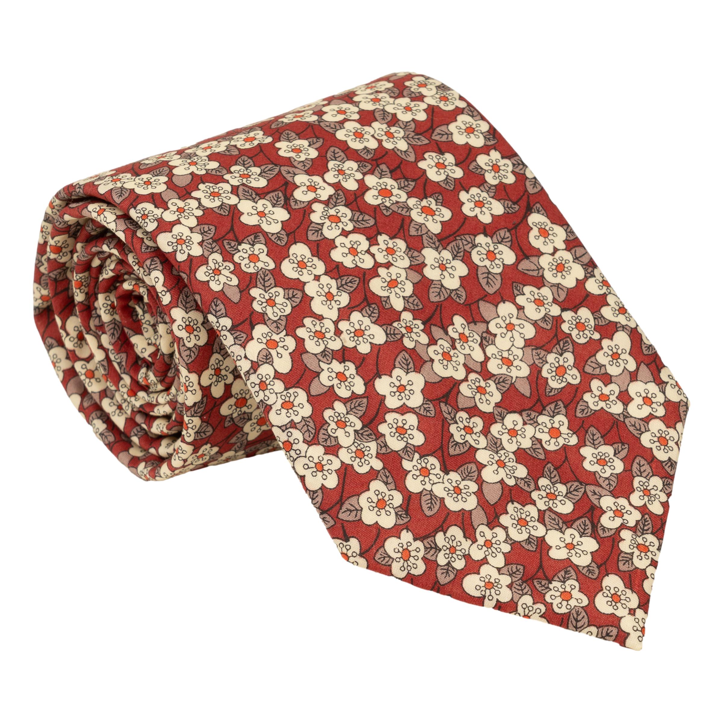 Tuscan yellow, lapis and saffron spring flowers on a off white ground. Handmade from the finest Liberty of London Tana Lawn Cotton. Made in the USA. To inquire about using this tie for a wedding please call one of our store locations. Please allow a lead time of about 2-4 weeks for delivery for large orders.