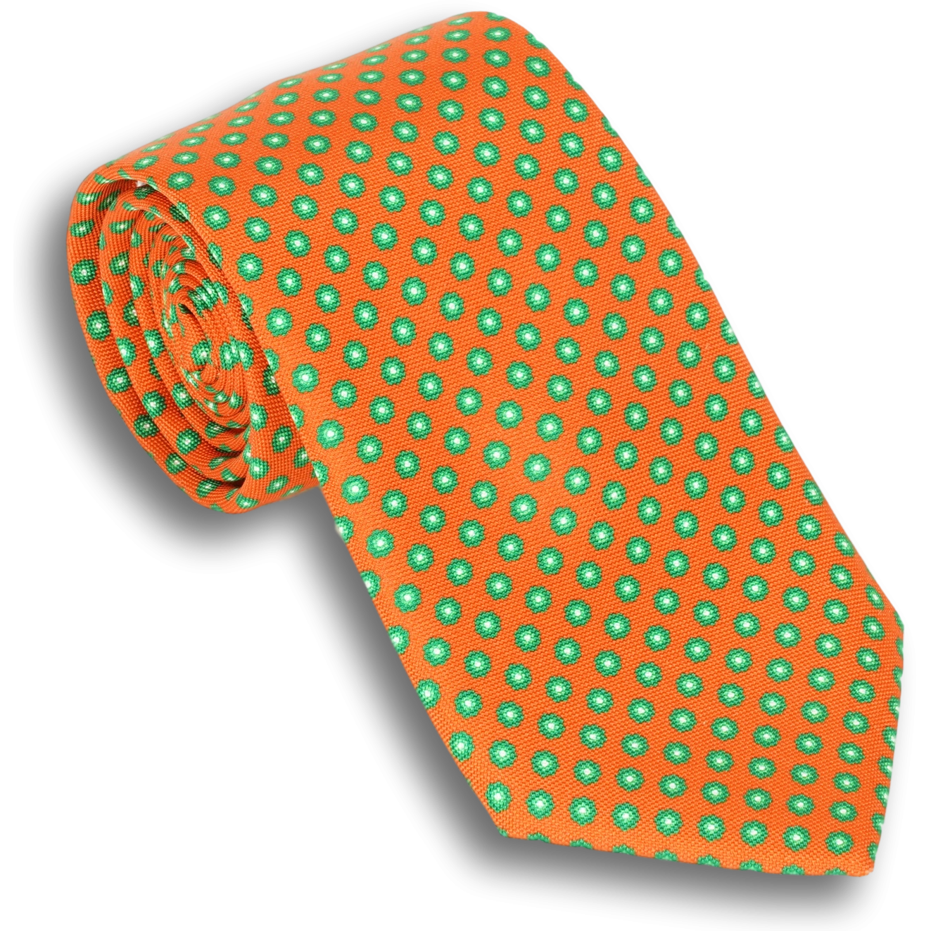 Orange with Shades of Green Dotted Silk Tie