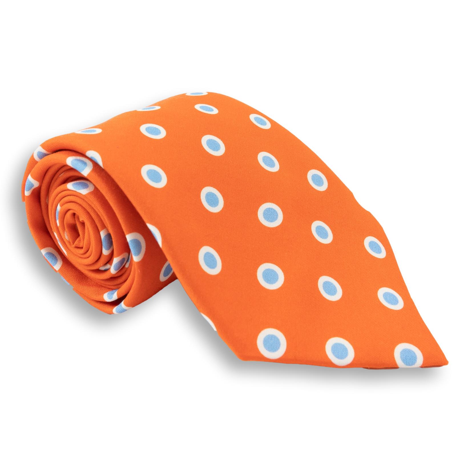 Orange with Sky Blue and White Circle Patterned Silk Tie