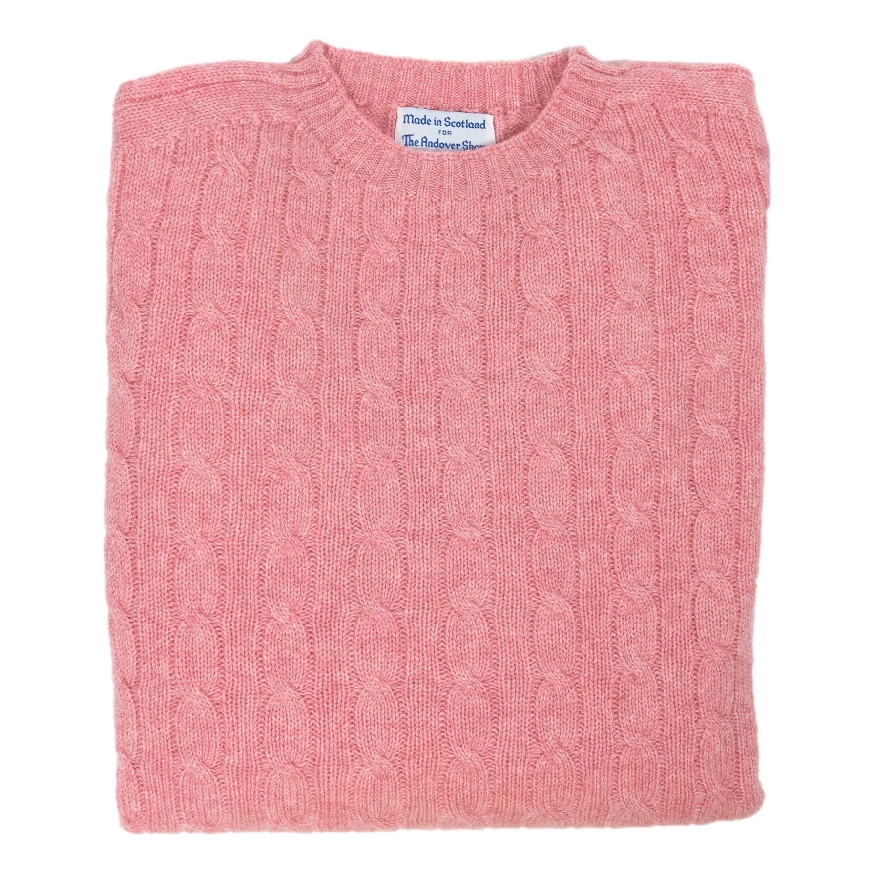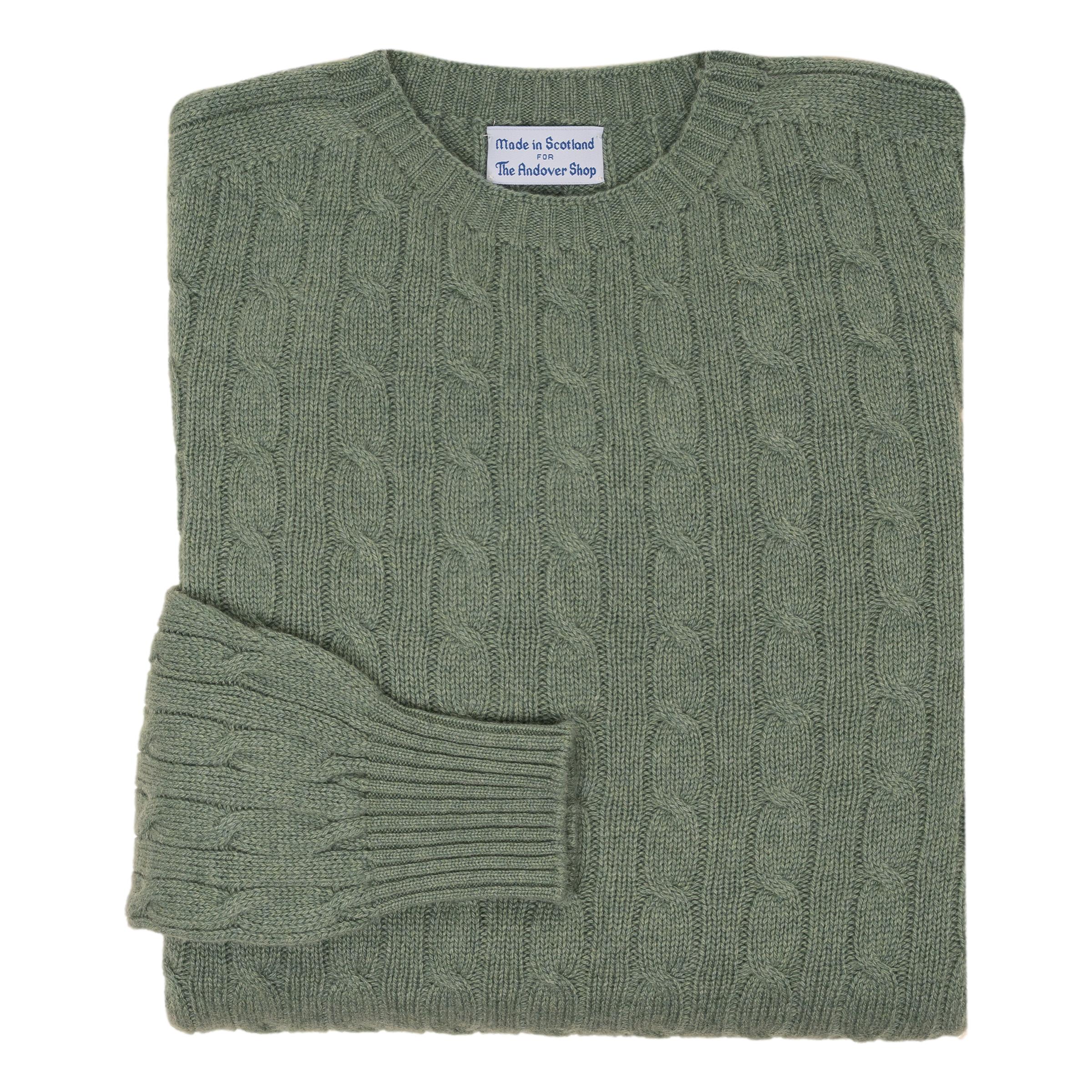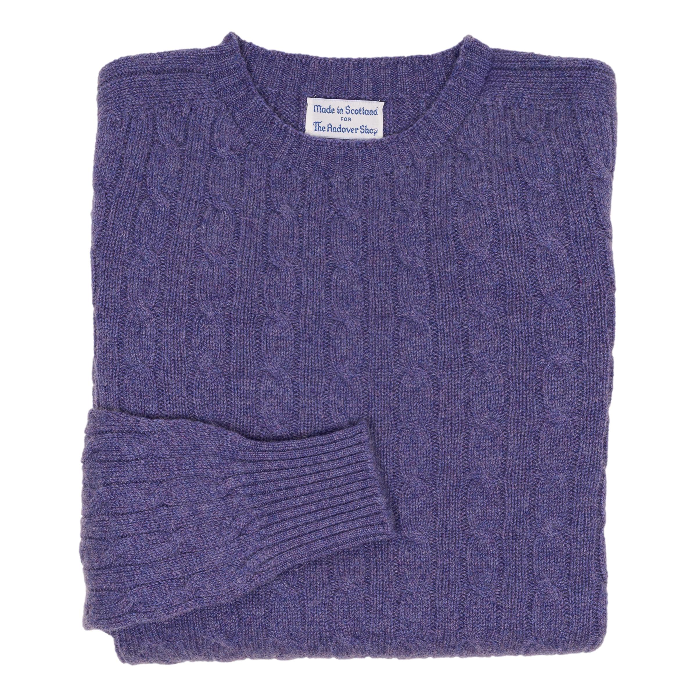 These 100% cashmere cable knit sweaters are made in Scotland for The Andover Shop from the finest cashmere. Medium weight and incredibly warm, these cashmere sweaters are perfect for a brisk fall evening and are even great well into winter. 2-ply cashmere pullover, round neck, and saddle shoulder.