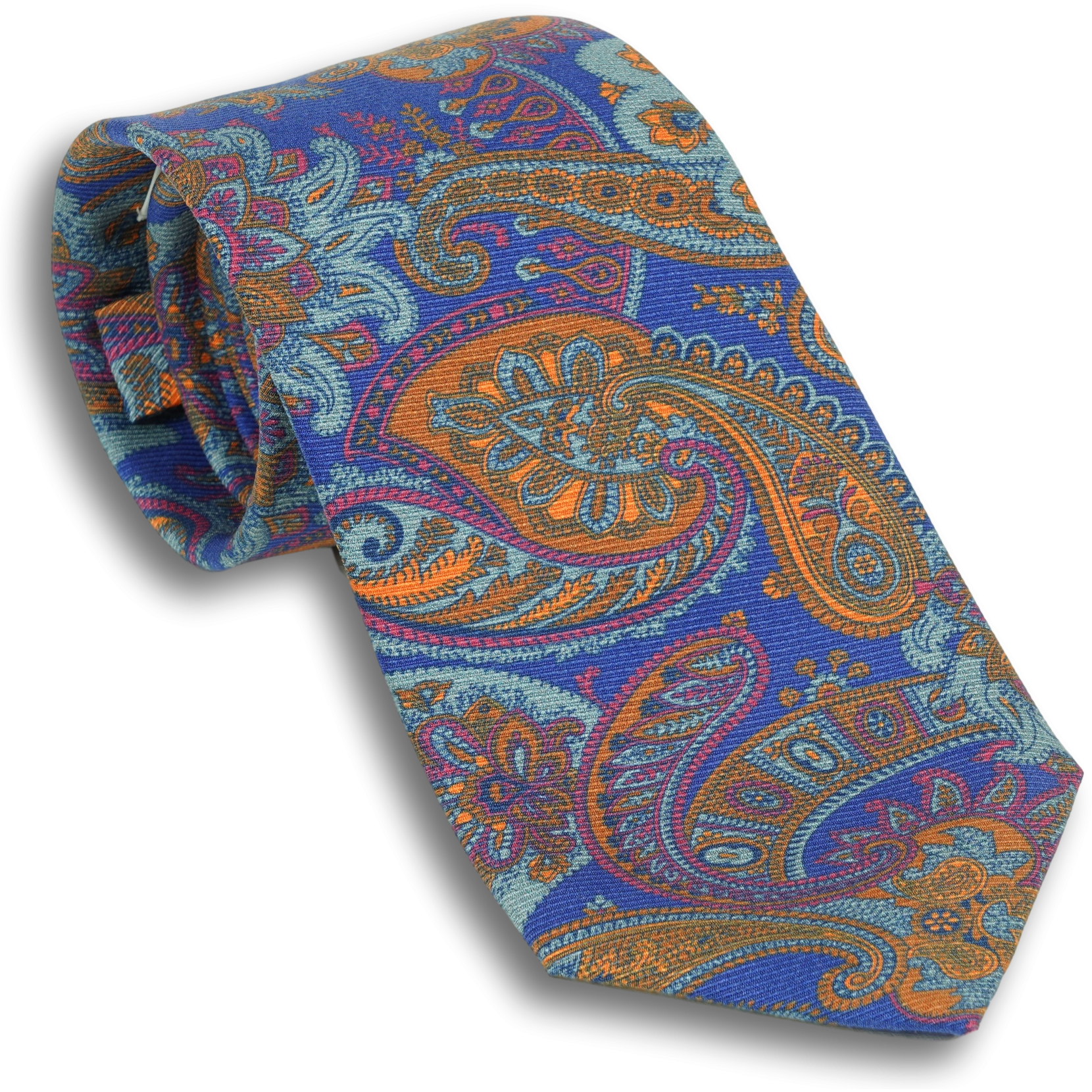 Royal Blue with Multicolored Large Paisley Patterned Silk Tie
