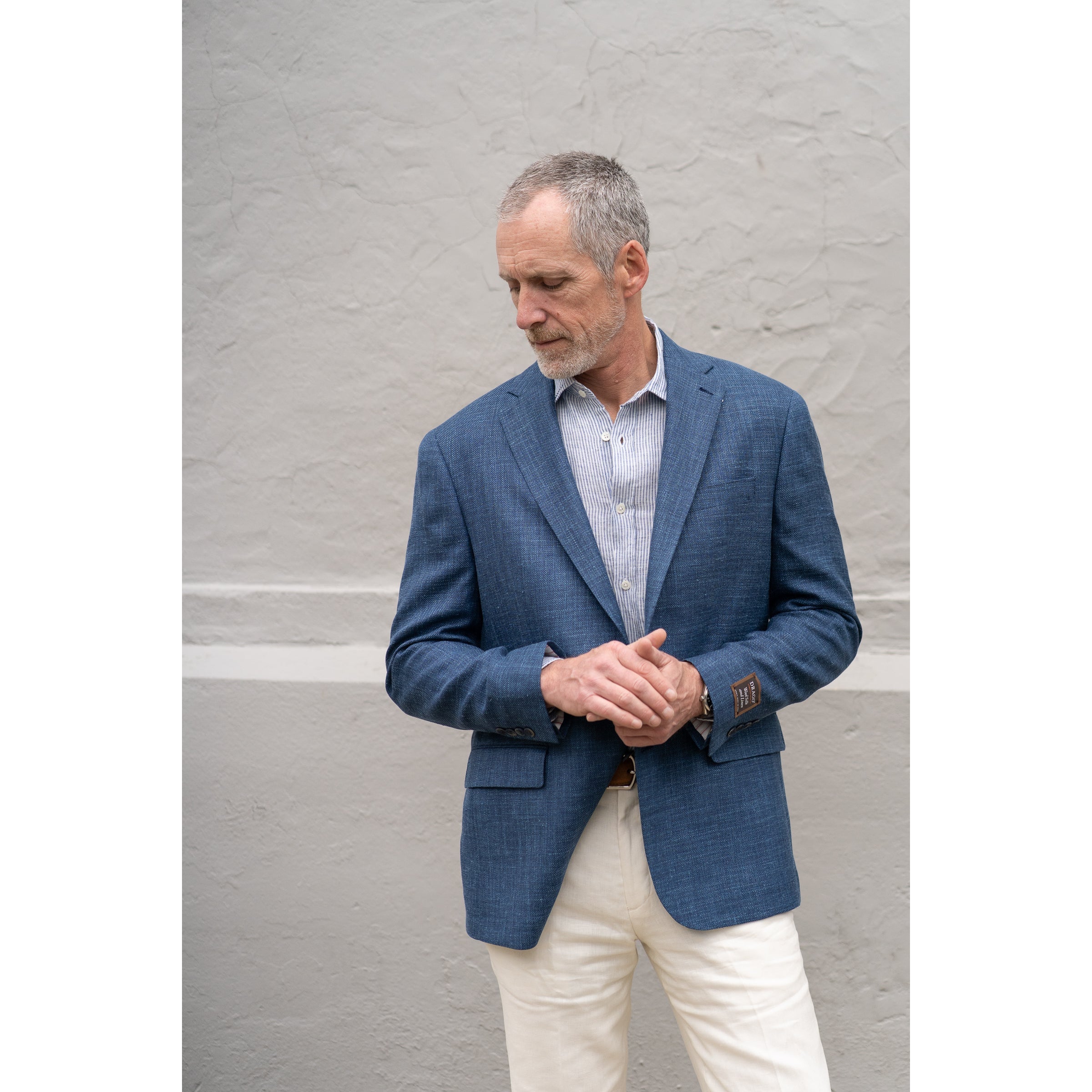 Sea Blue Wool, Silk, and Linen Drago Lanificio in Biella Sport Coat