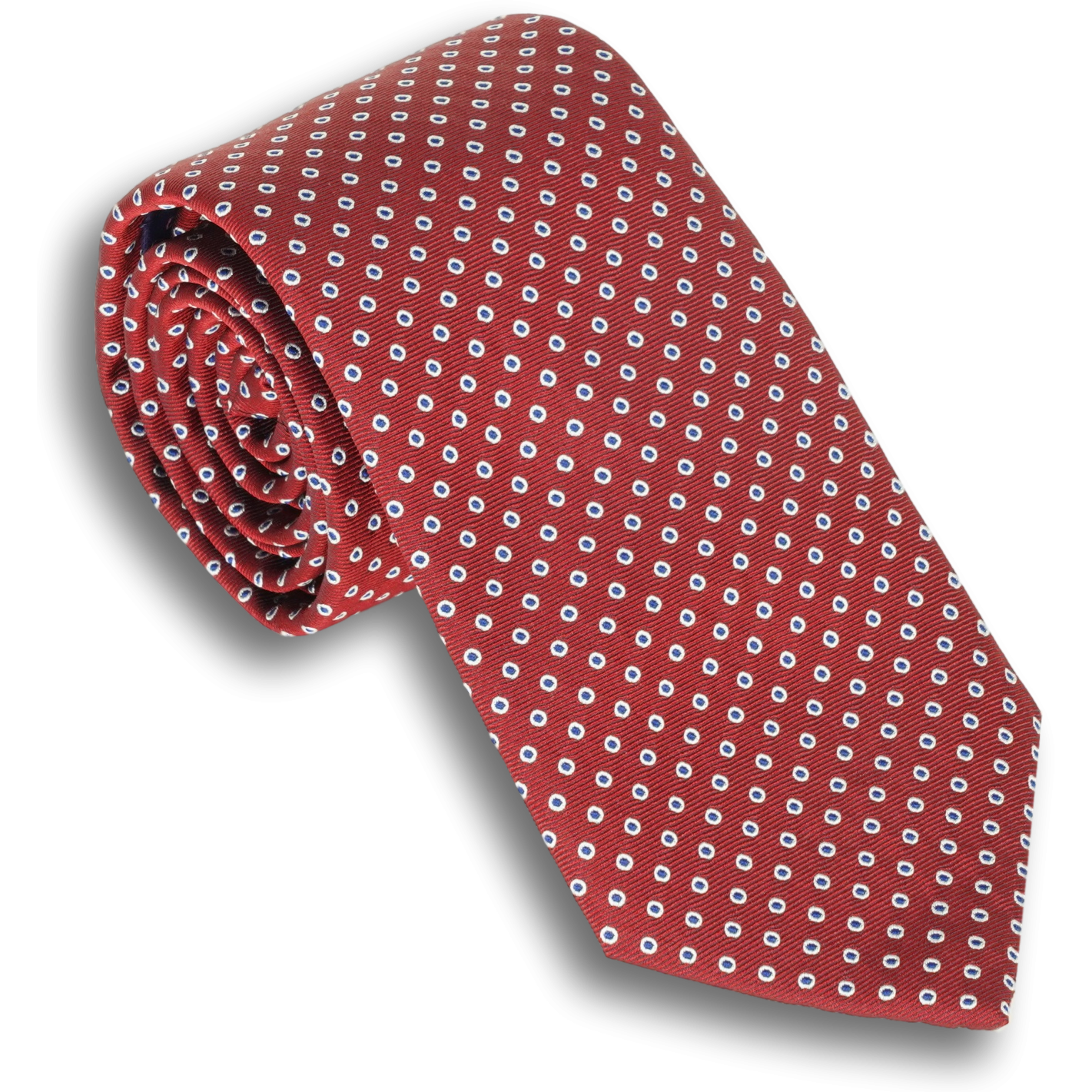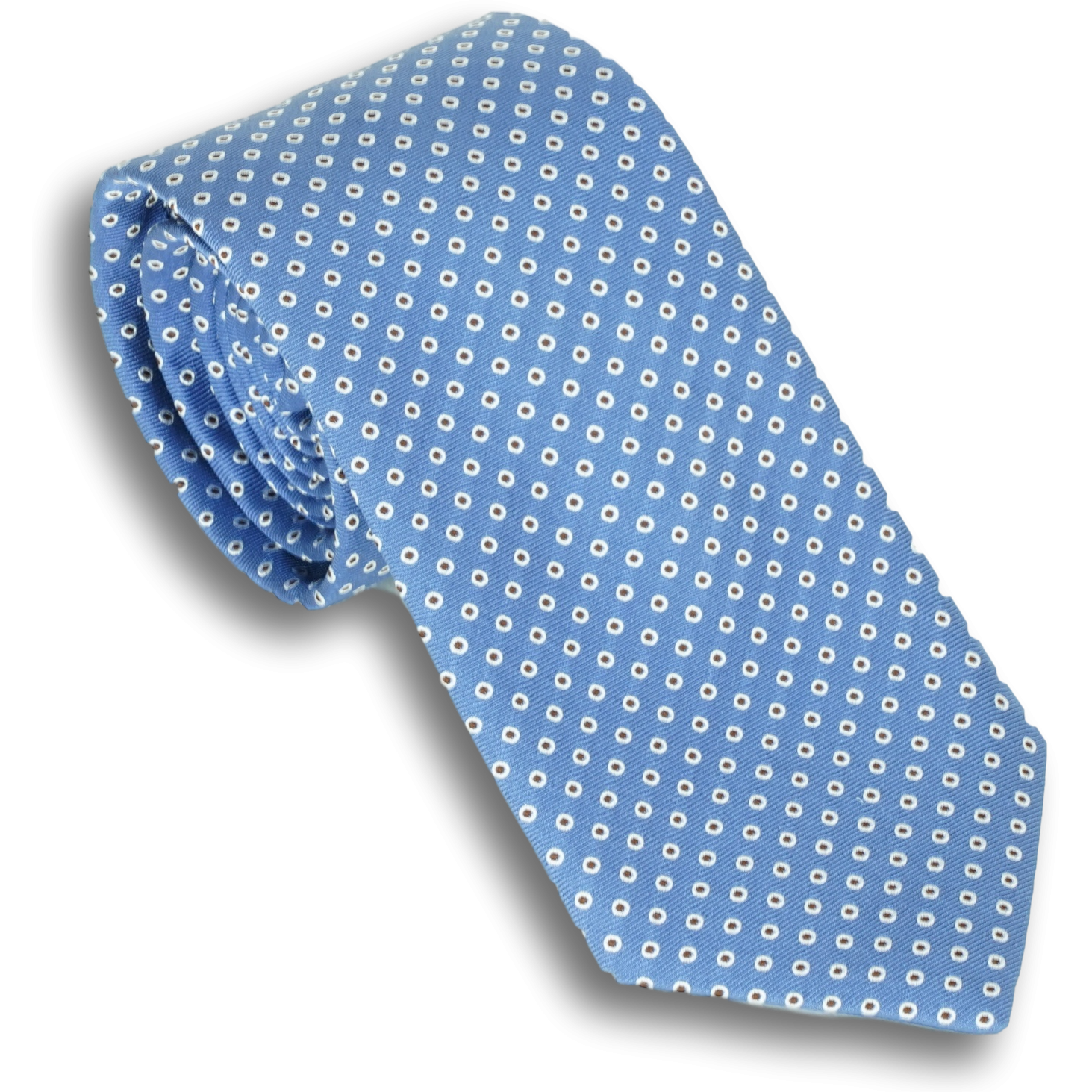 This 100% silk traditional tie is hand-finished and 8 cm in width, 149 cm in length. The color and design makes it versatile and complimentary to many wardrobe options. The perfect addition to every closet and tie collection. Made in England and dry clean only.