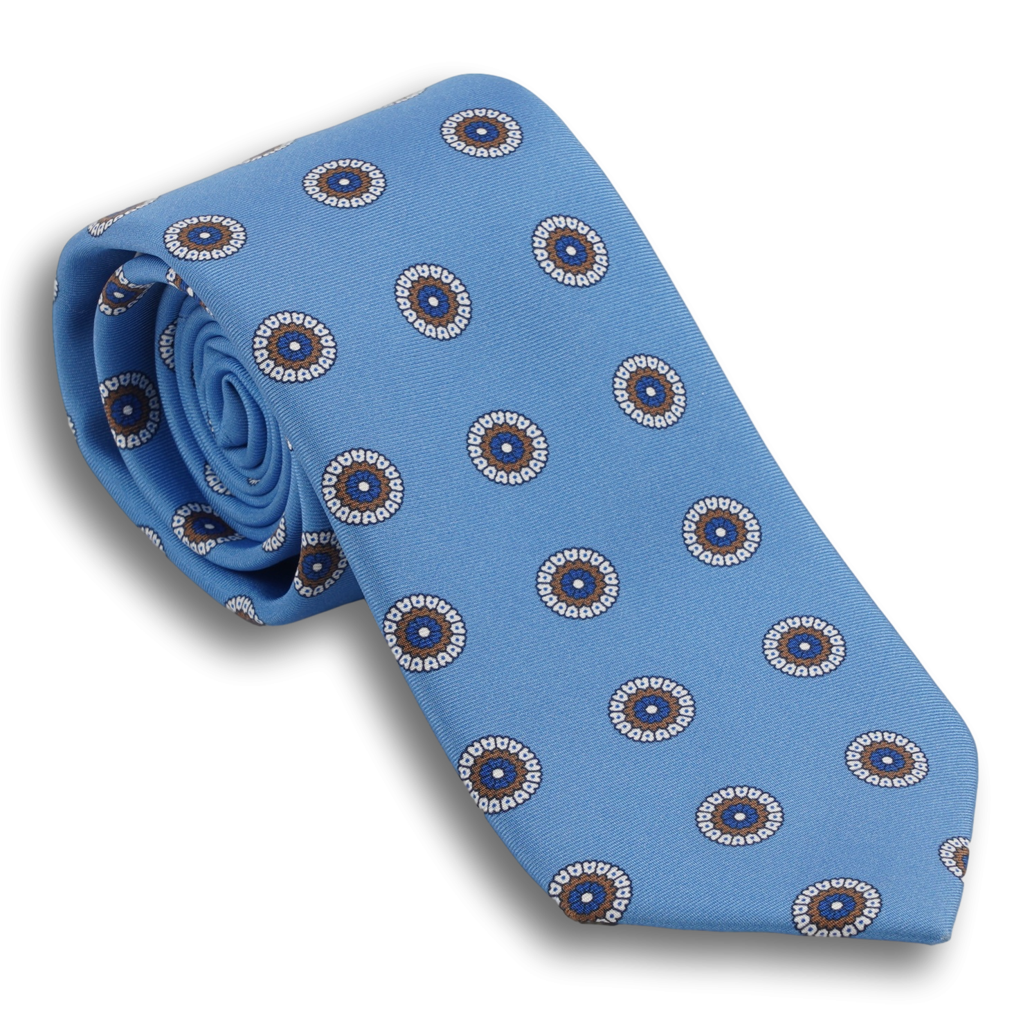 Sky Blue with Multicolored Shield Motif Silk Tie